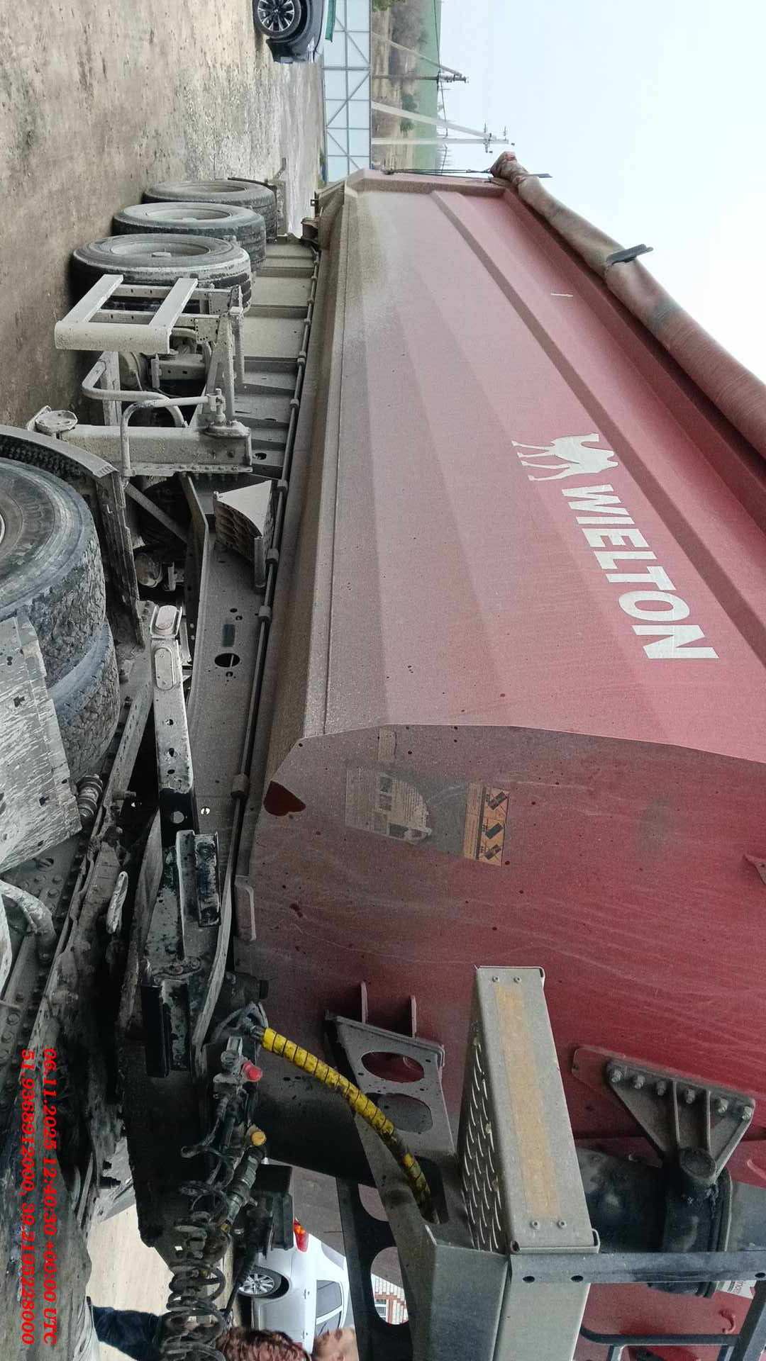 Описание: Номер лота 000016691 Ответственный Стешинский Денис ДЛ 03083-ВРЖ-23-АМ-Л ПОЛУПРИЦЕП САМОСВАЛ СТАЛЬНОЙ WIELTON NW 3 S 33 HP М4 ОПИСАНИЕ СТАНДАРТНОГО ОБОРУДОВАНИЯ: Шасси ? 3-осное: оси BPW, нагрузка на ось до 9000 кг ? сварная рама из конструкционной стали повышенной прочности ? пневматическая подвеска ? клапан поднятия и опускания платформы H-S ? клапан спускания воздуха из подушек ? подъемная первая ось автоматическая с возможностью ручного управления ? плита сцепки с 2-дюймовым заменяемым шкворнем ? раздвижные опорные ноги SAF ? боковая защита соответствует норме 73 ЕСЕ ? логотип Wielton на раме полуприцепа ? складной задний стальной бампер, соответствующий норме 58 ЕСЕ, адаптирован для работы с асфальтоукладчиком Кузов ? кузов выполнен из стали HB 450 толщиной 4,5 mm ? роботизированная сварка элементов кузова ? передняя и задняя стенки под наклоном 20? ? логотип Wielton на боковых стенках кузова ? рабочая площадка на передней стенке кузова с лестницей со стороны водителя ? задний затвор – откидная створка с фиксаторами ? гидроцилиндр: BINOTTO с верхним креплением без возвратного клапана, спереди полуприцепа ? замок фиксации опущенного кузова Hifix ? тент плотностью 680 г/м2, сворачивающийся на бок ? балка, стягивающая борта Тормозная система ? KNORR двухконтурная, соответствующая требованиям ADR ? антиблокировочная система EBS 2S/2M с функцией Roll Stability System – „RSP”, „RSS” или „TRS” Электрическое оборудование ? 24 v в соответствии с ECE и ADR ? задние фонари ASPOCK ECOLED II (full LED) ? динамический указатель поворота ? улучшенная видимость благодаря увеличенной площади поверхности стояночного и стоп-сигналов ? сменный рассеиватель устойчив к агрессивной среде и появлению царапин, легко монтируется и может использоваться для левой и правой стороны ? светоотражающие таблички ? 2 розетки для подключения и розетка EBS на передней стенке, без соединительных проводов Колёса и шины ? стальные диски ? шины Bridgestone 385/65 R 22,5 Покраска ? все стальные элементы перед покраской дважды подвергаются дробеструйной обработке ? антикоррозионная обработка рамы катафорезом (KTL) ? покраска производится в автоматических покрасочных камерах ? цвет рамы RAL 7021 black grey ? цвет кузова RAL по выбору Другое оборудование ? 2 тормозных клина под колёса ? 6 крыльев, задние крылья с брызговиками ? бак для воды ? инструментальный ящик Технические данные ** Технические параметры Единица NW 3 S 33 HP M4 A Внешняя длина мм 10 153 B Внутренняя длина мм 8 730 M Внешняя ширина мм 2 550 N Внутренняя ширина мм 2 372 F Внешняя высота мм 3 344 E Внутренняя высота мм 1 675 K Высота седла мм 1200 L Колёсная колея мм 2 090 D Расстояние шкворень – вторая ось мм 6 120 G Межосевое расстояние мм 1 360 H Задний свес мм 1 295 I Высота пола мм 1 576 J Высота во время максимального угла высыпки (разгрузки) мм 9 636 Расстояние от шкворня до опорных ног мм 2 411 Радиус обметания мм 1 678 ? Максимальный угол высыпки (разгрузки)* град. 49,7° Шины - 385/65 R22,5 Допустимая полная масса кг 36 000 (техн. 45 000) Собственный вес кг 7 280 Нагрузка на ось кг 8 000 (техн. 9 000) Нагрузка на седло кг 12 000 (техн. 18 000) Кубатура м3 33 Покупка возможна удобным для вас способом — оформление в лизинг или покупка за собственные средства. У нас обширная география присутствия на территории страны – более 70 офисов, поэтому наши менеджеры помогут заключить договор в любом городе России. Техника доступна в аренду.Стоимость в объявлениях уже включает НДС. Записаться на 