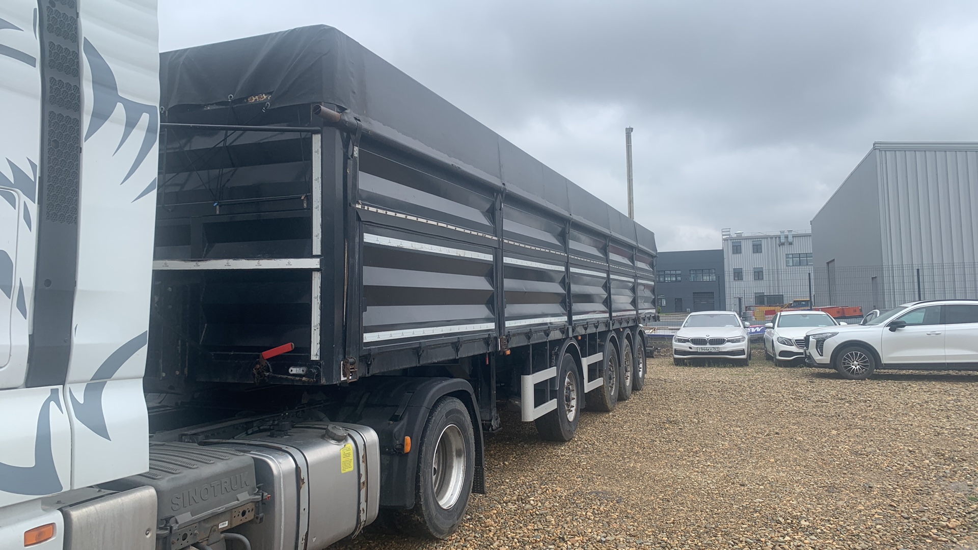 Лизингодатели: Номер лота 000013030 Ответственный за реализацию Калошин Михаил Александрович Размеры полуприцепа (ориентировочно) Длинна габаритная (мм) 13000 Ширина габаритная (мм) 2550 Высота габаритная (мм) 3200 Внутренняя длина кузова (мм) 12600 Внутренняя ширина кузова (мм) 2470 Внутренняя высота кузова (мм) 1800 1. Технические характеристики Внутренний объем кузова (м?) 55 Высота седельно-сцепного устройства минимальная (мм) 1150 Технически допустимая грузоподъемность полуприцепа (кг) 48000 Нагрузка на ССУ допустимая (кг) 12000 Максимальная полная масса автопоезда (кг) 44000 Расстояние от крайней передней точки до шкворня (мм) 1100 Снаряженная масса полуприцепа (кг) ±5% 6800 Передний радиус обметания, не более (мм) 2040 Межосевое расстояние (мм) 2510/1310/1310 Колесная колея (мм) 2040 Нагрузка на ось, допустимая (кг) 9000/7500/7500 /7500 Колея кронштейнов подвески (м2. Техническое описание Шасси • Сварная рама усиленной конструкции из двух лонжеронов; используемые стали 09г2С/10ХСНД (соответствует Hardox 600/700) • Опорное устройство двухскоростное с ручным односторонним приводом Jost/BPW (Германия), грузоподъемность 24 т, ручка управления с правой стороны; • Шкворень Jost/BPW (Германия), 2 дюйма (соответствует ЕЭК ООН № 55.00); • Два противооткатных упора; • Съемная корзина запасного колеса (двухпозиционная); • Боковая алюминиевая защита; • Заднее защитное устройство, с рамкой регистрационного знака; • Пластиковые крылья Domar (Италия) над каждым колесом; • Умывальник с мыльницей Daken (Италия); • Инструментальный ящик Daken (Италия); • В задней части рамы, между лонжеронами закрепляется табличка с логотипом заказчика.м) 1300 Кузов • Кузов объемом 55 м3, с выгрузкой на левую и правую сторону; • Толщина профиля борта — 1,5 мм - сталь 8ПС; • Толщина настила пола — 2,5 мм - сталь 8ПС; • Откидные боковые борта в нижней части кузова (с левой и правой стороны) с верхней навеской; • Форма борта «елка»; • Количество секций бортов — 5 на сторону; • Задний борт «глухой», оборудован площадкой для обслуживания полога; • Запорная фурнитура бортов (СЗА); • Каждый борт открывается отдельно с каждой стороны; • Резиновая влагозащитная полоса в верхней части откидных бортов; • Ступеньки на передней стенке внутри кузова для доступа внутрь; • Стяжки внутри кузова (съемные); • Резиновые уплотнители по внутреннему периметру бортов; • Светоотражающая маркировка. Подвеска • 4 х 9000 кг BPW (Германия) - ECO-PLUS 3 одни из самых легких осевых агрегатов в этом классе с высокими прочностными характеристиками для тяжелых условий эксплуатации; • Пневматическая подвеска BPW (Германия); • Механизм подъема первой и четвертой оси (кнопки выводятся в кабину); • Тормозные механизмы дискового типа. Шины и диски • Ошиновка односкатная (колесная формула 8+1 (запасное); • Шины размерности 385/65 R22.5; • Диски стальные; Тормозная система • Пневматическая электронная тормозная система WABCO; • Датчики ABS (согласно рекомендации изготовителя); • Стальные воздушные ресиверы; • Тормозные камеры мембранного типа; • Стояночная тормозная система полуавтоматического типа с пружинными энергоаккумуляторами; • Пневматические соединительные головки для подключения на гибких шлангах; Электрооборудование • Электрооборудование (Германия/ Австрия/Россия); • Две 7-ми- клемовые и одна 15-ти-клемовая розетки; • Розетка ABS; • Два задних комбинированных фонаря с функцией габаритных 