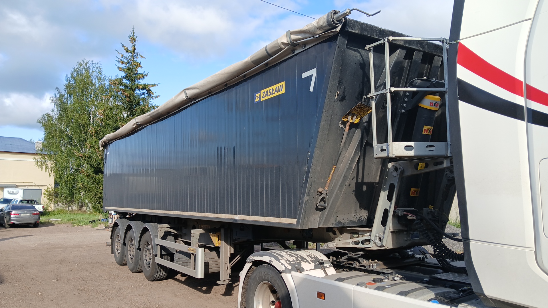 Описание: Точный пробег не установлен, указан нормативный Длина внутренняя9 760 мм Ширина внутренняя2 485 мм Высота внутренняя 2 000 мм Высота платформы 1 520 мм Объём кузова50,2 м3 Собственный вес 6 180 кг ±4% Грузоподъёмность 31 820 кг Допустимая полная масса 38 000 кг Высота седла тягача 1 200 мм РАМА: конструкция изготовлена из стали повышенной прочности тип DOMEX 700 MC. Шасси оцинковано. опорные ноги – технические SAF, сцепной шкворень JOST 2”, задний бампер – оцинкованный стальной, проушина для буксировочного троса. ОСИ, ПОДВЕСКА: 3 оси усиленные SAF, технической грузоподъёмностью 9 000 кг каждая, статически и динамически сбалансированный трехосный комплект пневматическая подвеска, усиленная, механизм подъёма первой оси – двусторонний SAF. ТОРМОЗА: дисковые SAF INTRADISC O430 ET120 усиленная конструкция AIRVENT ПНЕВМАТИКА: двухпроводная пневматическая тормозная система в соответствии с ECE, EBS KNORR-BREMSE 2S2M, розетка EBS, пневматические соединители: жёлтый и красный, установленные под операционным помостом [консоль], парковочные тормоза – мембранно-пружинные энергоаккумуляторы на 2 и 3 оси, манометр измерения давления, клапан выравнивания платформы H-S, клапан автоматического спуска воздуха из подушек во время разгрузки. КОЛЕСА: шины 385/65 R 22,5 [бренд по выбору производителя] – 6 шт., стальные диски. ГРУЗОВАЯ ПЛАТФОРМА: пол из износостойкого листового алюминия тип 5083 толщиной 7мм боковые стенки из алюминиевых профилей, толщиной 30 мм (профиль внутр. 2,8 мм, внешний профиль 1,8 мм) кузов изготовленная из износостойкого алюминиевого листа типа H 34 – HB 114 система непрерывной сварки внутри кузова 2 балки соединяющие боковые стенки, складываемые, заднее закрытие: клапо-двери 50:50, 2 ссыпных лючка для выгрузки зерна, обрешетка STRONG PROFILE-усиленная окантовка тент 680гр/м2 убирается в сторону, оборудованный в алюминиевую планку, цвет тента RAL 7035, грузовой кузов окрашенный в цвет: белый. ГИДРАВЛИЧЕСКАЯ СИСТЕМА: гидравлической цилиндр HYVA, односкоростная, с давлением 170-250 бар, подходит для высокого и низкого рабочего давления HYFIX ЭЛЕКТРИЧЕСКАЯ СИСТЕМА: 24V, согласно с требованиями правил дорожного движения и ECE, 2 соединительные розетки [2x7pin и 1x15pin] установленные под операционным помостом [frontbox], многофункциональные задние фонари освещение номерного знака, габаритные огни, боковые габаритные огни. ПРОЧЕЕ ОБОРУДОВАНИЕ: пластиковый ящик для инструментов [250x250x500 мм] башмаки под колеса - 2 шт., дополнительное точечное освещение-1 шт. операционная платформа с перилами, установленными на раме, отличительные знаки-2 шт., полные пластиковые крылья - 6 шт., задние брызговики с логотипом производителя. боковой рулонный брезент с креплением на расширитель лебедка запасного колеса, светоотражающая лента по бокам полуприцепа и закрытия ECE-совместимая боковая защита, входные ступени внутри кузова для легкого входа в полуприцеп щетка и лопата |