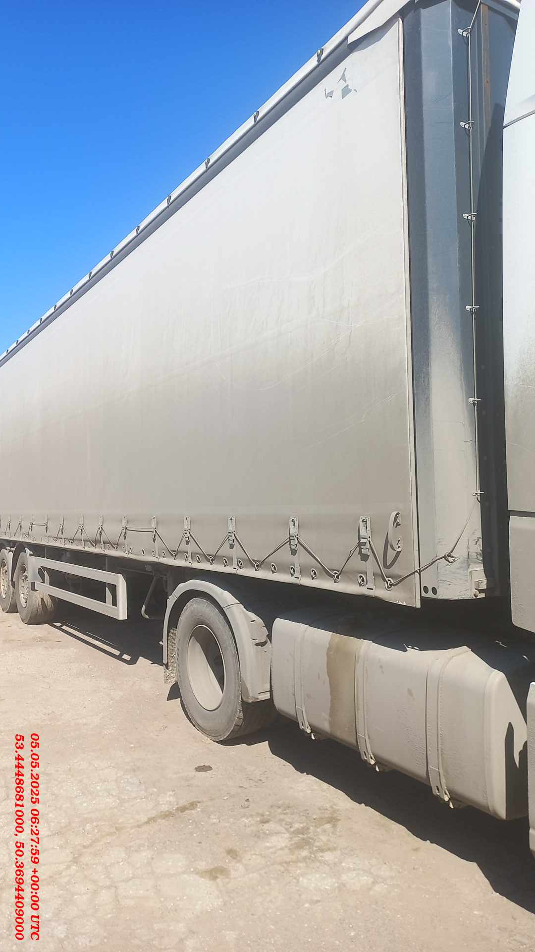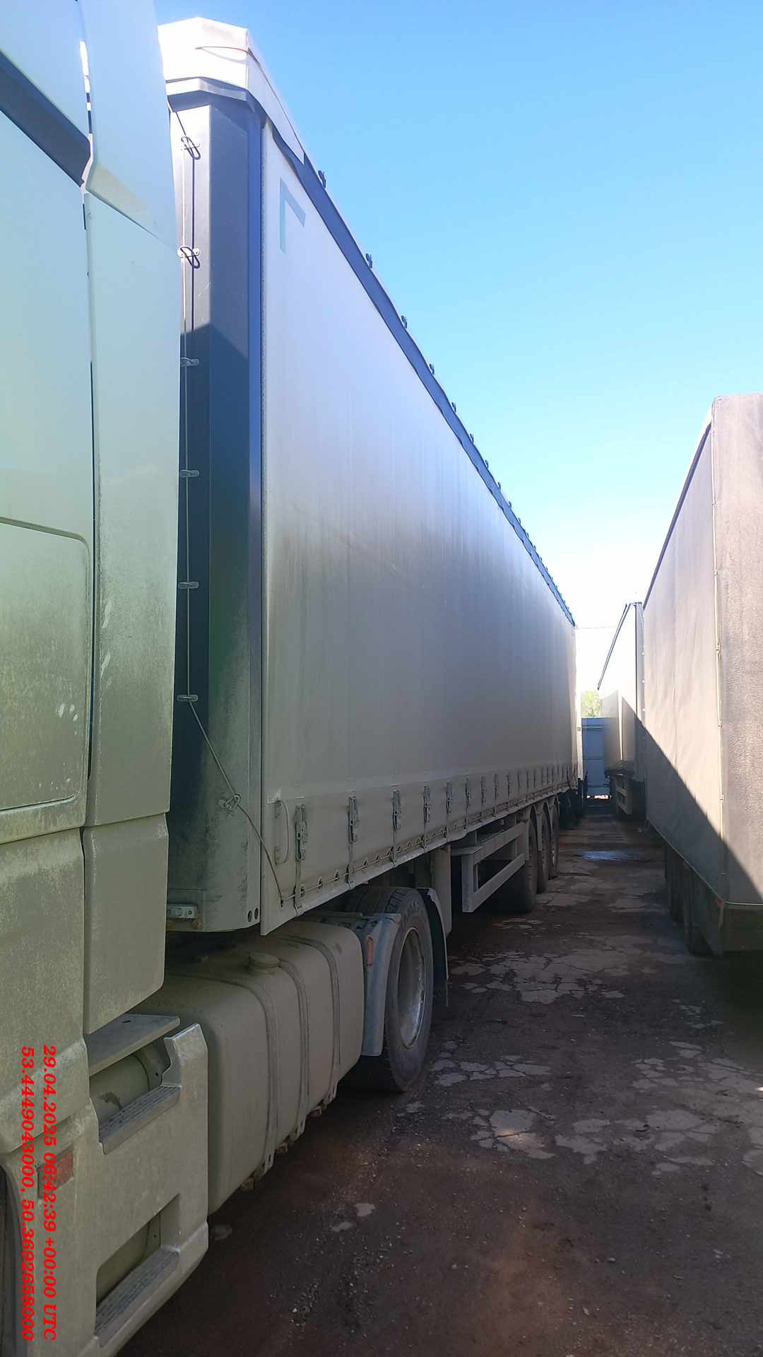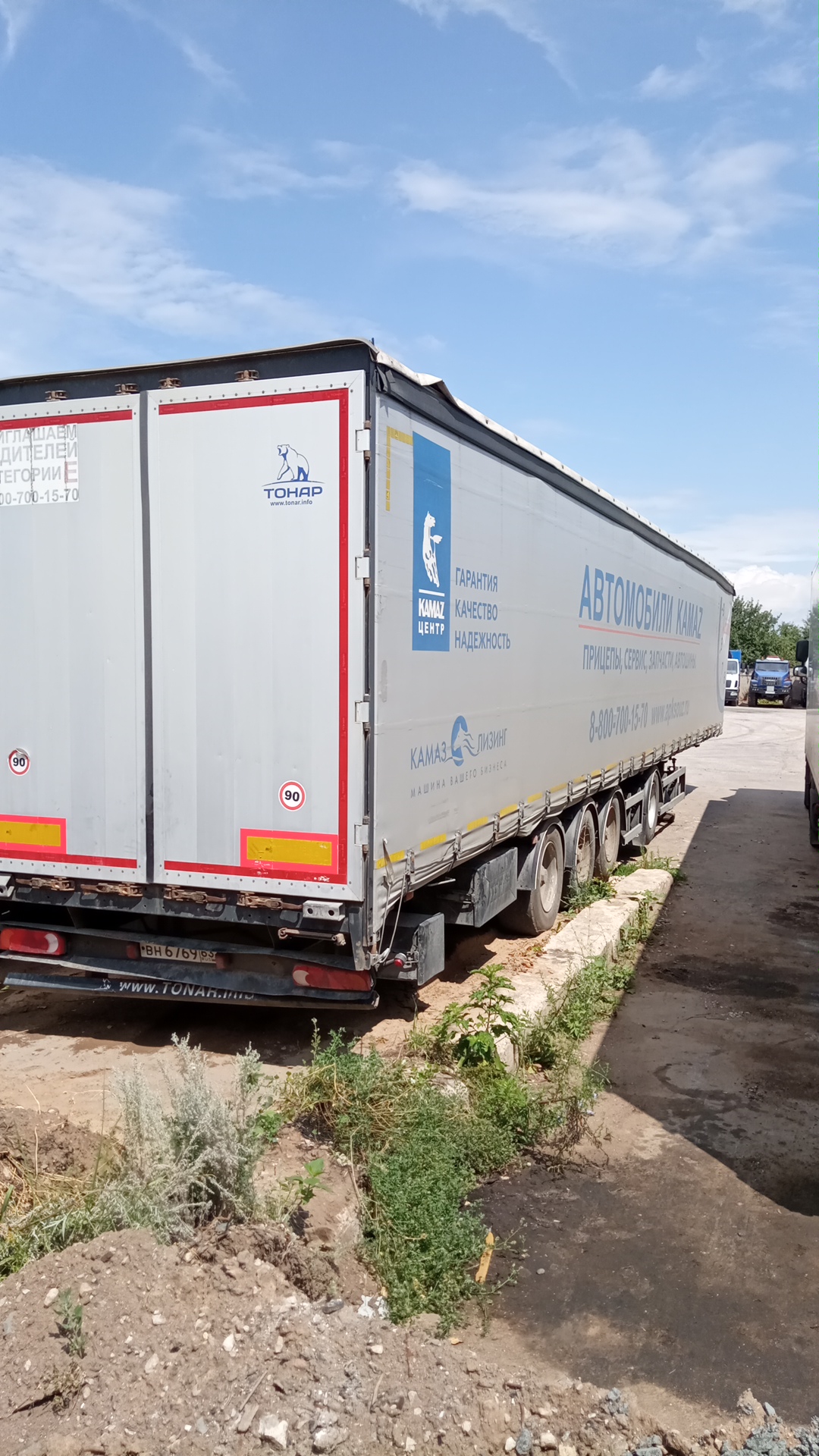 Лизингодатели: Безбортовой шторный полуприцеп, объём полуприцепа 100куб. Ворота на четырёх запорах, корзина под два запасных колеса, запасное колесо, инструментальный ящик, тормоза дисковые, оси SAF, размер резины 385/55R19.5, ABS. |