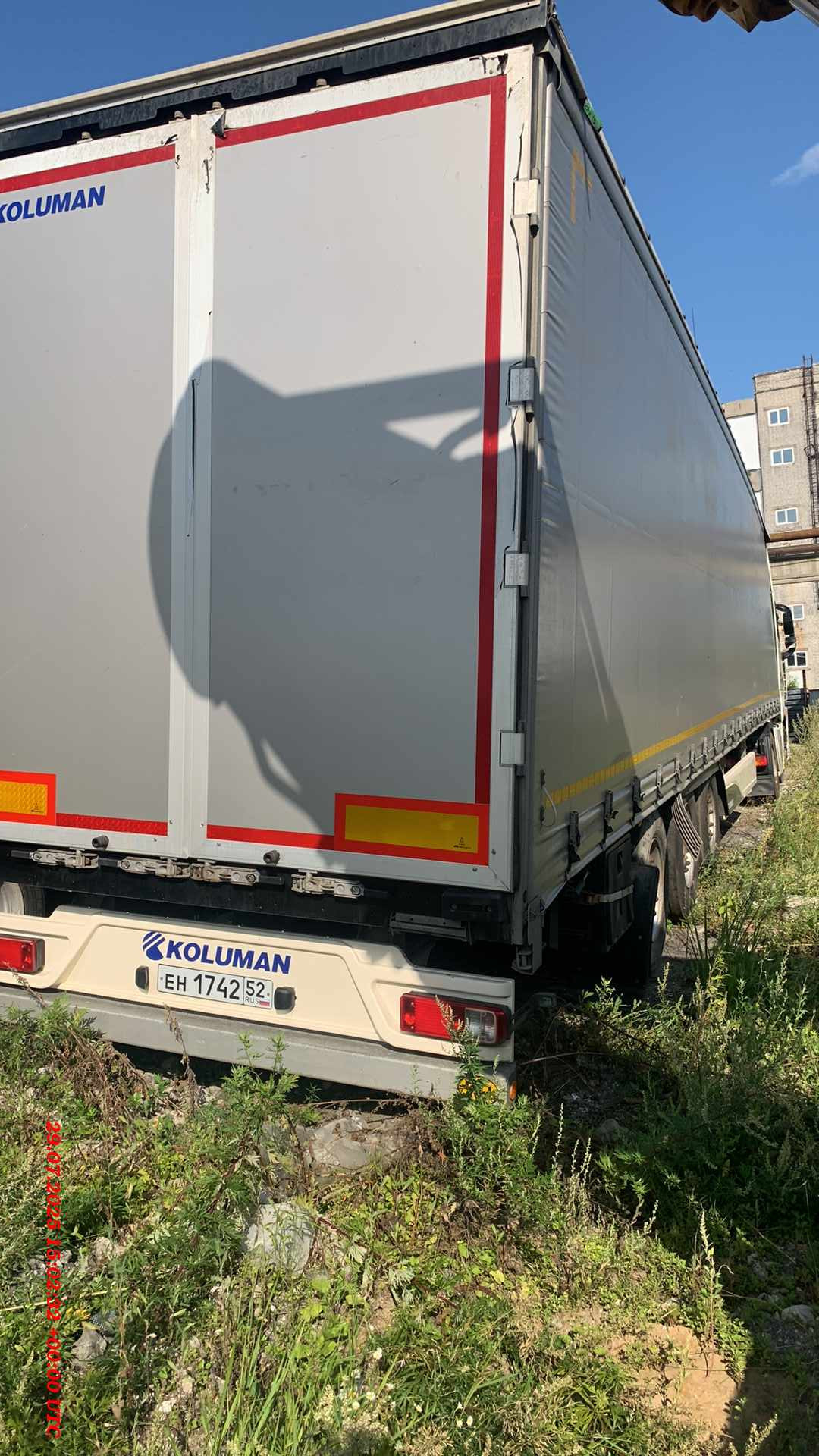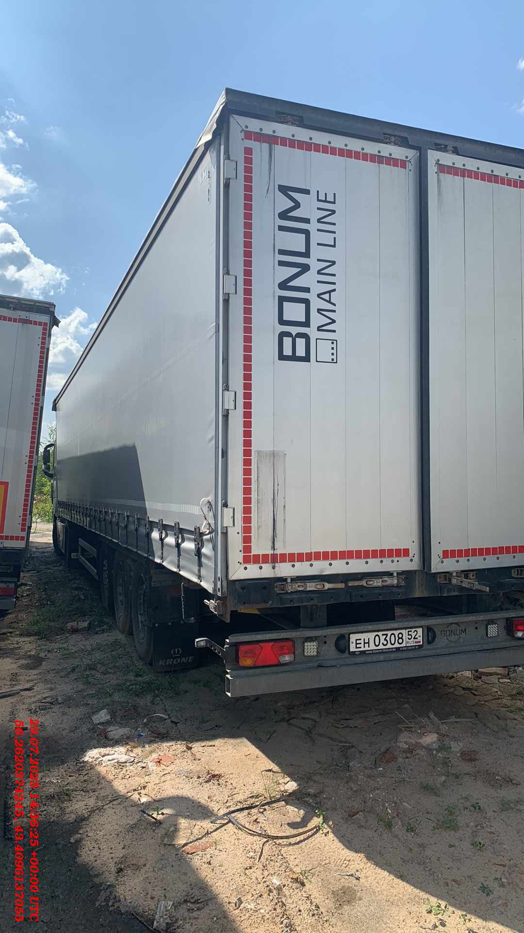 Лизингодатели: Наработка указана примерно. Технические характеристики/Описание В соответствии с российским утверждения в TC RU E-DE.MT02.00555 году включены приложение EAC Icon и российский номер официального утверждения типа на заводской табличке Максимально допустимая нагрузка на шкворень: 12.000 kg Максимально разрешенная нагрузка на ось: 24.000 kg Допустимый общий вес 36.000 kg Максимально технически допустимая нагрузка на шкворень: 12.000 kg Максимально допустимая техническая нагрузка на ось: 27000 кг. Максимально допустимый общий вес: 39000 кг. Подходит для седельного тягача по стандартам ISO 1726 Высота ССУ без нагрузки: 1.150 mm Шасси Сварная металлическая конструкция, состоящая из двух Т-образных лонжеронов и поперечин, а также внешней рамы с поперечинами и удлинениями Много замковая внешняя рама \"Мультилок\" для универсального крепления груза с крепежными позициями через каждые 100 мм Высота рамы в передней части: 125 мм (включая пол и седельную плиту) Внутренняя погрузочная длина 13 620 мм Внутренняя погрузочная ширина 2 480 мм 2\"-шкворень (радиус поворота в передней части 2.040 мм) Задний противоподкатный брус по нормам ЕС боковая защита согласно нормам ЕС Фиксатор двери Опорное устройство Две механические стойки, 2х12 т, с полукруглой пятой, производитель по нашему выбору Управление опорными стойками с одной стороны, справа Оси 3 оси с допустимой нагрузкой 9 000 кг каждая Центрирование дисков Оси SAF с пневмоподвеской и дисковыми тормозами Шины 6 шт. 385/65 R 22.5, Держатель запасного колеса Крепление запасного колеса корзинного типа за колесной тележкой, справа Второе крепление запасного колеса корзинного типа, размещаемое напротив В соответствии с шинами автомобиля Защита колёс от грязи Пластиковые крылья Покрытие на крыльях, препятствующее образованию брызг в соответствии с директивой ЕG Тормозная система Тормозная система в соответствии с директивами ECE R13 Стояночный тормоз с энергоаккумулятором Подключение тормозных шлангов на высоте около 800 мм над платформой Диагностический разъем по нормам ISO7638 (кабель питания EBS) 2 противооткатных клина Разъем для подключения Palm Внимание: использование прицепа допускается только с тягачом, оснащенным системой ABS! Система EBS, 2S/2M, 2 датчика на одной оси Осветительное оборудование Световые и сигнальные приборы в соответствии с директивами EG 76/756/EWG и последующими или директивой UN ECE № 48 2 лампы подсветки номерного знака Разъемы электрических кабелей спереди, примерно на 300 мм над платформой 2 светодиодных габаритных фонаря на резиновых кронштейнах Боковые светодиодные габаритные огни Передняя стенка Стальная передняя стенка со стационарными угловыми стойками, боковая загрузка ограничена Кронштейны для пломбировочного троса на передней стенке Задняя стенка Стальные задние двери контейнерного типа, включающие стальной портал на болтах, встроенные замки и скрытые петли; траверса крыши откидная, сдвигается вместе с крышей Задняя дверь окрашенная Двойные запоры для контейнерной задней двери Натяжитель тента на заднем портале с трещоткой Боковые борта Без бортов |