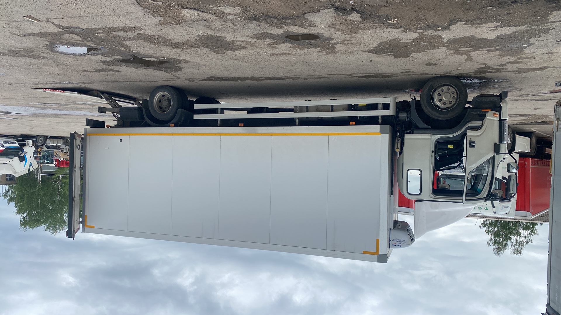 Описание: Общий вес доп./техн.: / 39000 кг Грузоподъемность доп./техн.около: / 33065 кг Нагрузка на осевой агрегат доп./техн.: / 27000 кг Нагрузка на седло доп./техн.: / 12000 кг Собственный вес около: 5935кг+/-погрешность Общая длина около: 13850 мм Общая ширина макс.: 2550 мм Общая высота с переди в районе седла около: / 3985 мм Общая высота в кормовой части около: / 4000 мм Внутреннняя длина около: 13650 мм Внутренняя ширина около: 2480 мм Внутренняя ширина между задними угловыми стойками около: 2460 мм Боковая высота загрузки спереди около: 2580 мм Боковая высота погрузки сзади около: 2680 мм Внутренняя высота спереди около: 2690 мм Внутренняя высота сзади около: 2790 мм Шасси экспедиционного полуприцепа 2 белых габаритных фонаря спереди 2 белые/красные задние габаритные фонари 2 х 7 полюсные розетки спереди, без соединительного кабеля Пол Пресованная фанера толщиной около 30 мм., расположенный на продольных траверсах для высокой точечной нагрузки для максимальной нагрузки от осей погрузчика до максимально. 7 100 кг. Передняя стенка/передние угловые стойки высотой 2 580 мм, боковые стойки стальные в объемном исполнении, механизм для открывания бокового тента на передней стене «Crash-Blocker», внизу изнутри стальной защитный профиль высотой приб. 140 мм. Средние стойки 3 пара сдвижных стоек передвигаемых по всей длине, 4 кармана для вставных планок и длинный карман внизу 3 пара установочных мест для стоек Вставные планки 3 ряда деревянных вставных планок Задняя стенка / задние угловые стойки Угловые стойки задние стальные до нижнего края крыши, крепление тента с круглой трубой и натяжной трещоткой Задняя портальная дверь, двухстворчатая с замками из 2-х интегрированных поворотных штанг на каждой створке Тент Тент с вклеенными горизонтальными и вертикальными ремнями Стяжные замки из нержавеющей стали Плотность тента: 900 гр/м2 Крыша Сдвижная крыша, задний клапан поднимается наверх и передвигается вместе с тентом с заду на перед, L-профиль крыши для автомобильной индустрии, внутренняя ширина между профилями крыши около 2 490 мм |