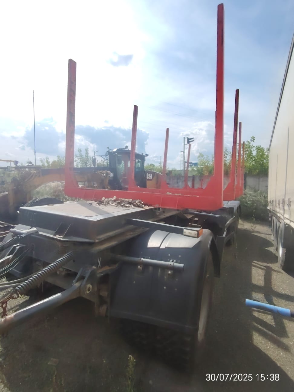 Описание: Полная масса прицепа в снаряженном состоянии 6450 кг Технически допустимая грузоподъемность прицепа 23550 кг Технически допустимая общая масса прицепа 30000 кг Нагрузка на первую ось 10000 кг Нагрузка на вторую ось 10000 кг Нагрузка на третью ось 10000 кг Межосевое расстояние 1-ая и 2-ая оси 4150 мм Межосевое расстояние 2-ая и 3-ья оси 1370 мм Расстояние между рессорами 900 мм Колея колес внутренних 1440 мм Колея колес наружных 2160 мм Габаритная длина 9950 мм Габаритная ширина 2550 мм Габаритная высота max 3650 мм Погрузочный объем 40 м3 Высота платформы по центру оси в ненагруженном состоянии 1375 мм Высота платформы по центру оси в нагруженном состоянии 1330 мм Техническое описание: Рама Рама прицепа служит основанием платформы для установки специализированного оборудования и представляет собой сварную конструкцию из ложементов двутаврового сечения, соединенных между собой поперечинами. Рама поворотной тележки Рама поворотной тележки сварная. К лонжеронам рамы прикреплены кронштейны подвески. К передней поперечине рамы крепятся кронштейны дышла. Подвеска Оси трубчатого сечения с барабанным тормозным механизмом размером 420х160 (тормозные колодки). Подвеска рессорная «МАЗ» (1-ая ось), подвеска рессорно-балансирная «МАЗ» (2-ая и 3-ья оси). Оси колес прицепа предусматривают установку двускатных дисковых колес. Пневмотормоза Рабочая тормозная система пневматическая, двухпроводная оборудована АБС, состоит из головок соединительных, фильтров магистральных, воздухораспределителя, ресиверов с кранами слива конденсата, клапанов контрольного вывода, регулятора тормозных сил, тормозных камер и модуляторов. Стояночная тормозная система действует через пружинные энергоаккумуляторы на колодки рабочего тормоза второй и третьей оси. Электрооборудование АБС. АБС (4S/3M). Пневматическое соединительное устройство расположены впереди рамы на кронштейне и подключается к системе электропитания тягача через кабель с разъемом по ISO 7638. Датчики АБС установлены на первой и третьей оси. АБС фирмы БПО «Экран», допустимая установка «Wabco». Шины Шины 315/80R22,5 тип протектора универсальный. Колеса дисковые, крепление стандартными болтами и гайками, диаметр отверстия 26 мм, покрышка колеса широкопрофильная, бескамерная. Шины СНГ. Шасси Установка стопора. Стопорное устройство поворотной тележки полуавтоматического действия, предназначено для стопорения тележки при прямолинейном движении прицепа задним ходом. Установка поворотного круга. Установка дышла. Дышло представляет собой жесткую, сварную конструкцию треугольной формы, состоящую из труб, соединенных между собой поперечинами. Дышло шарнирно соединено с рамой поворотной тележки посредством осей. Беззазорная сцепка O50. Установка брызговиков задних. Установка брызговиков передних. Монтаж противооткатных упоров. Боковая защита согласно Правилам ЕЭК ООН №73. Держатель в виде корзины для одного запасного колеса. Стальная защита от въезда сзади (бампер) согласно Правилам ЕЭК ООН №58. Установка настила Настил состоит из ламинированной водостойкой фанеры (панелей) толщиной 27 мм. Листы расположены между продольными балками и наружной рамой. Поверхность панелей с сеточным покрытием. Цвет – черный, коричневый. Установка специализированного оборудования Устанавливаются ложементы из высокопрочной стали марки S700. Креплен