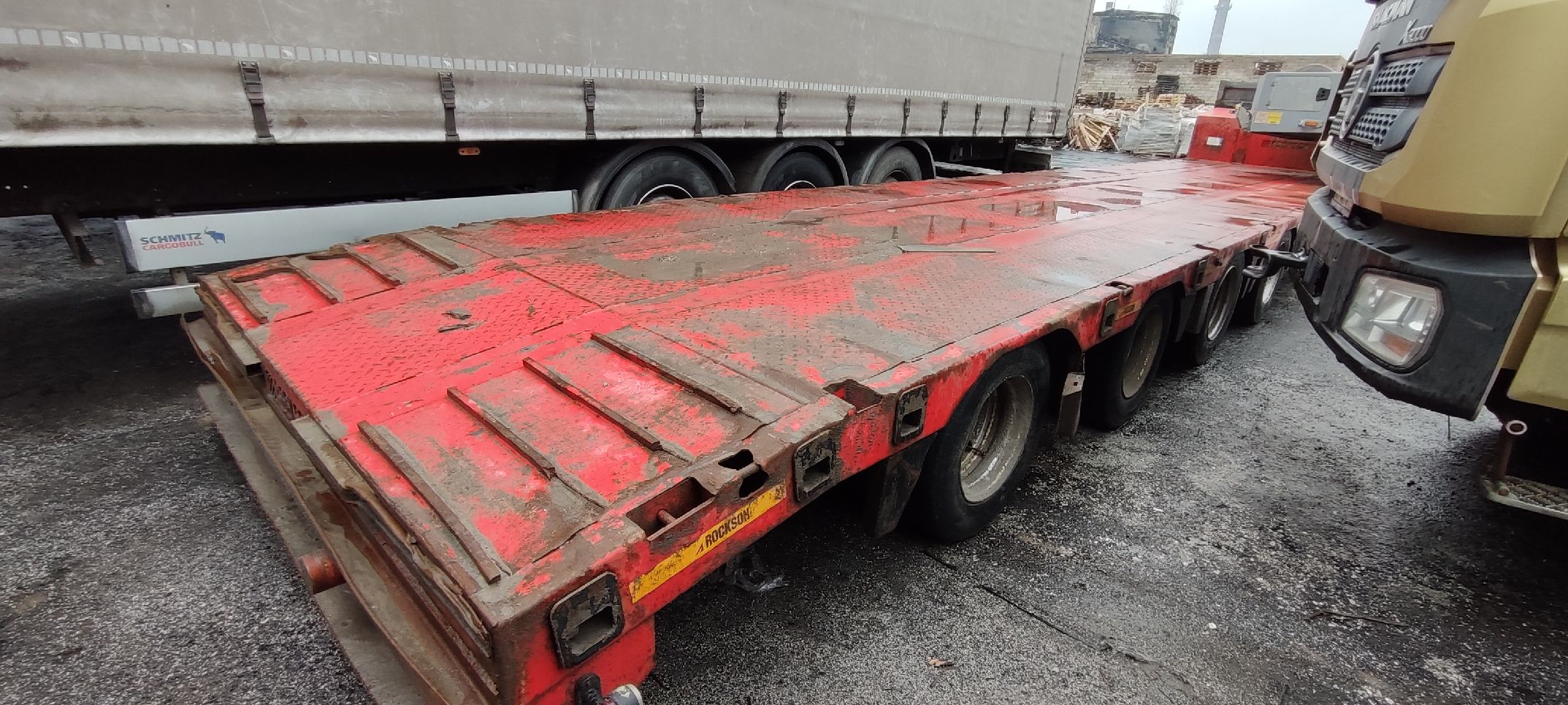 Лизингодатели: Ответственный за реализацию: Лысов Вадим Номер лота: 000007410 Точный пробег/наработка, не установлены! Полуприцеп-тяжеловоз «ROCKSON» 989144 Комплектация + импортные оси SMB (Франция); + пневматическая подвеска с краном уровня пола; + пневматическая система Wabco c ЕBS; + опорное устройство SAF/JOST (Германия); + боковая защита; + бортовая площадка на гусаке; + противооткатные упоры; + светотехника Ermax (Германия)/Sim (Португалия); + пескоструйная обработка трала+грунт; + лакокрасочное покрытие Tikkurila (Finland); + инструментальный ящик; + коуши для увязки груза; + настил металлический лист с рифлением; + 1-я ось подъемная, 4-я ось поворотная; + стаканы под коники 5 пар; + стробоскопы 4 шт. и проблесковый маячок 1 шт.; + механические трапы с пружинным помощником.; Технические характеристики Грузоподъёмность , кг 52000 Погрузочная высота, мм 870 мм Масса снаряженная, кг 11500* Полная масса, кг 63500 Максимально нагрузка, кг - на заднюю тележку 44000 - на ССУ тягача 19500 Шины 235/75R17,5 Количество колес, шт. 16+1 запасное Электрооборудование (Германия) ERMAX/Sim с питанием от тягача, напряжением 24В, количество и расположение приборов по ГОСТ 8769, разъемное соединение по ГОСТ 9200 Шкворень JOST или GF (Германия) 2 или 3,5 дюйма Максимальная скорость при полной массе, км/ч 70 Трапы Механические трапы с пружинным помощником Угол въезда по трапам, град 11-13 |