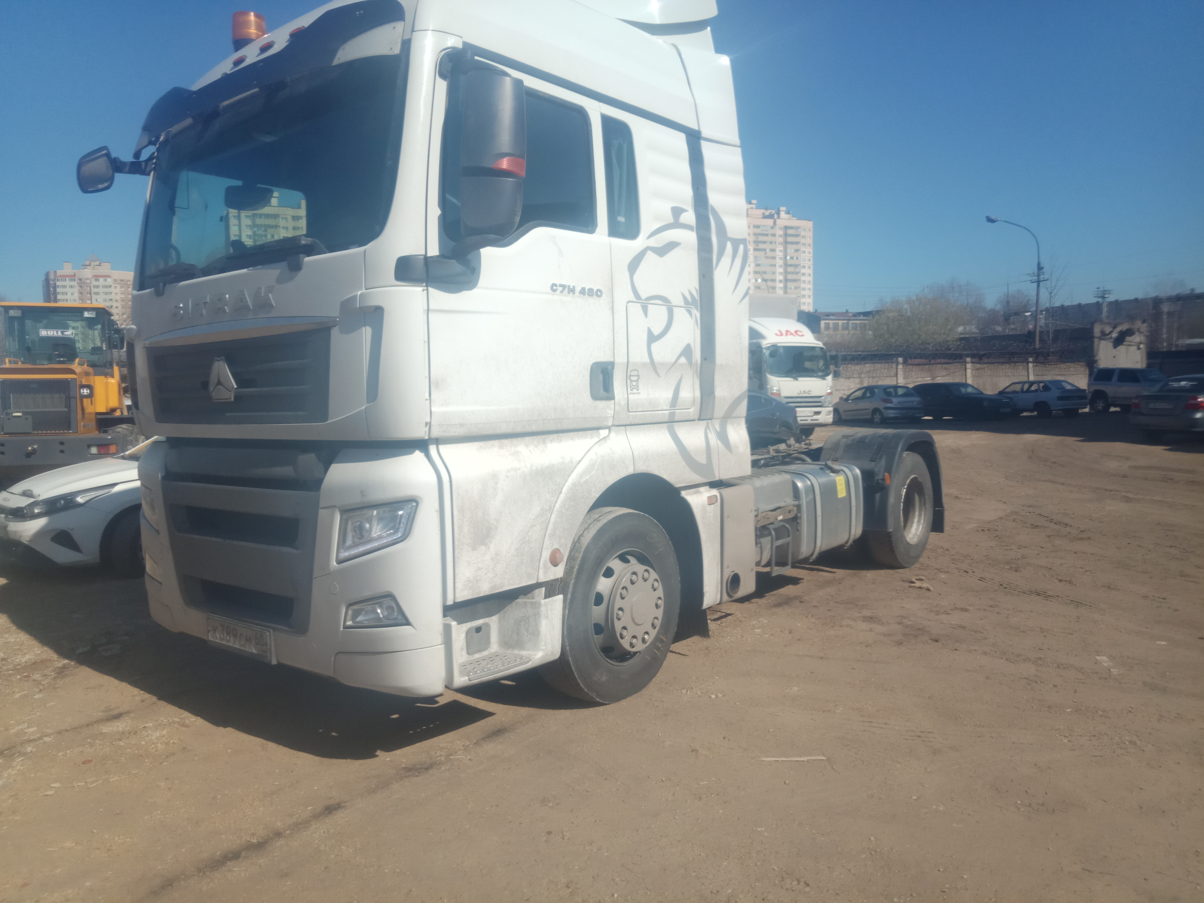 Лизингодатели: Основные данные: Cнаряженная масса, кг 8 450 Нагрузка на ССУ кг11 500 Полная масса автопоезда, кг 41 800 Тех. допустимая полная масса, кг 18 000 ?На переднюю ось, кг 7 000 ?На заднюю ось, кг 13 000 Высота ССУ JOST 2\", мм 1160 / 1130 Двигатель MC13.48-50 (лицензия MAN D26) ?Норма токсичности ЕВРО V ?Крутящий момент 2300 Нм при 1050…1400 мин -1 ?Круиз-контроль ?Моторный тормоз (EVB) ?Топливная система Bosch Common Rail Трансмиссия ?Колесная формула 4х2 ?Коробка передач роботизированная ZF TRAXON ZF12TX2620TD 12+4 передачи ?КОМ NH/4с ?Ретардер ?Ведущий мост с гипоидной передачей (лицензия MAN) ?Пер.отношение главной передачи i=2,71 ?Блокировка дифференциала заднего моста Шасси ?Подвеска передняя - параболические рессоры 7 т. ?Подвеска задняя пневматическая - 13 т. ?Стабилизаторы поперечной устойчивости ?Топливный бак алюминиевый 860 + 400 л. ?Рулевое управление Bosch ?Электронная тормозная система EBS WABCO ?Дисковые тормоза ?Шины 315/70R22,5 ?Пластиковый бампер ?Электронная система курсовой устойчивости ESC ?Рама (лицензия MAN), лонжероны 270х85х8 мм Кабина ?C7H-G с 2 спальными местами (лицензия MAN) ?Цвет кабины белый ?Пружинная подвеска кабины с амортизаторами ?Электростеклоподъемники боковых дверей ?Центральный замок с дистанционным управлением ?Кондиционер (автоматический климат-контроль) ?Люк на крыше с электроприводом ?Магнитола MP5. Сенсорный экран 5 дюймов. USB. Bluetooth. 4-х сторонняя камера ?Комфортное сидение водителя на пневмоподвеске ?Холодильник ?Многофункциональное рулевое колесо ?Верхний и боковые обтекатели «Зимний» пакет ?Аккумуляторы 2х240 Ач ?Теплоизоляция кабины ?Топливный фильтр типа Fleetguard с электроподогревом ?Электрообогрев зеркал заднего вида ?Автономный отопитель кабины 4 кВт ?2 аварийных выключателя АКБ ?2 проблесковых маячка оранжевого цвета |