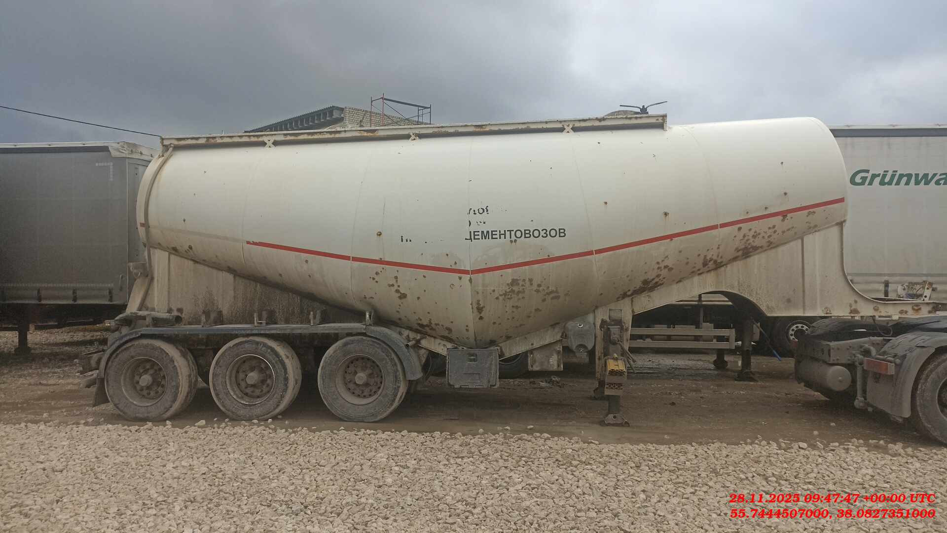 Описание: Номер лота 000017826 Ответственный Стешинский Денис полуприцеп цементовоз GUTEWOLF Марка, модель Guven Makinа (GuteWolf), GMS Материал колбы Сталь ST 52. Толщина стенок 4мм. Лазерная резка, роботизированная сварка. Форма колбы Миллениум (2 конуса) Объем 35 м3 Масса снаряженного полуприцепа 7 200 кг Грузоподъёмность 34 500 кг Загрузка 3 люки с тремя барашками каждый. DN 450. Расположение разгрузочной трубы Расположена над осями, выведена в задний бампер Диаметр разгрузочной трубы Соединение быстросъёмное Shtorz. DN 100 Запорная арматура Пневматическая (открывается с нажатием кнопки) Разгрузочный рукав 2шт. х 3 метра. Расположены в пеналах над крыльями с правого бока. Несущая конструкция цистерны Подкатная тележка. Подвеска Трехосная/четырехосная пневматическая 3 Оси, передняя подъемная SERTEL (барабанный тип тормозов) Резина Резина BRIDGESTONE размерности 385/65 R22.5 Диски Стальные марки JANTSA Запасное колесо 1 штука в сборе. Кранштейн в передней нижней части цистерны. Тормозная система WABCO Опорное устройство Двухскоростное грузоподъемностью 2*25(50)т., с ручным односторонним приводом марки OMS Сцепное устройство шкворень диаметром 2” международного типа с опорной плитой марки OMS (Турция) Электрооборудование SANEL напряжением 24 Противооткатный упор 1 штука, материал пластик Лестница Стальная в задней части цистерны, со ступенями исключающими скольжение Воздуховоды На линии подаче воздуха в цистерну расположен влагомаслоотделитель. Аэрация днища для облегчения выгрузки. Компрессор Поршневой GlobalTech G160-3 (7,2 м3/мин) с электроприводом VOLT (18,5 кВт) Кабель электрического компрессора Выведен в задний инструментальный ящик Манометр 1 шт жидкостный Краны Марки Klepsan Клапан сброса давления Автоматический, срабатывает свыше 2,5 Бар Инструментальный ящик 2 штуки: - 1 штука из стали в передней части сбоку цистерны - 1 штука из стали в задней части Окраска цистерны Пескоструйная обработка, покраска трехкомпонентной краской с нанесением акрилового слоя. Цвет белый RAL 9003 Лестница Стальная в задней части цистерны, со ступенями исключающими скольжение Площадка обслуживания Стальная, исключающая скольжение. Поручни с автоматическим подъёмом при опускании лестницы. Бочок для мойки рук с дозатором для мыла 1 шт., объём 20 литров, расположен после осей в средней части полуприцепа. Ящик под огнетушитель Пластиковый, 1 шт. Расположен на опорной лапе 35м3 на 3 осях SERTEL с электрическим компрессором Покупка возможна удобным для вас способом — оформление в лизинг или покупка за собственные средства. У нас обширная география присутствия на территории страны – более 70 офисов, поэтому наши менеджеры помогут заключить договор в любом городе России. Техника доступна в аренду.Стоимость в объявлениях уже включает НДС. Записаться на осмотр и узнать более подробную информацию вы можете у наших специалистов по телефону, указанному в объявлении. Звоните! Мы — компания Альфа-Лизинг. Более 26 лет мы работаем с предпринимателями и создаём лизинговые продукты, предлагая для покупки легковые и грузовые автомобили, лёгкий коммерческий транспорт, прицепы и полуприцепы с пробегом, оборудование с наработкой. Все представленные автомобили находятся в наличии в нашем автопарке. Техника с пробегом имеет прозрачную историю эксплуатации, прошла необходимые проверки и доступна к покупке в короткие сроки. Мы гарантируем юр