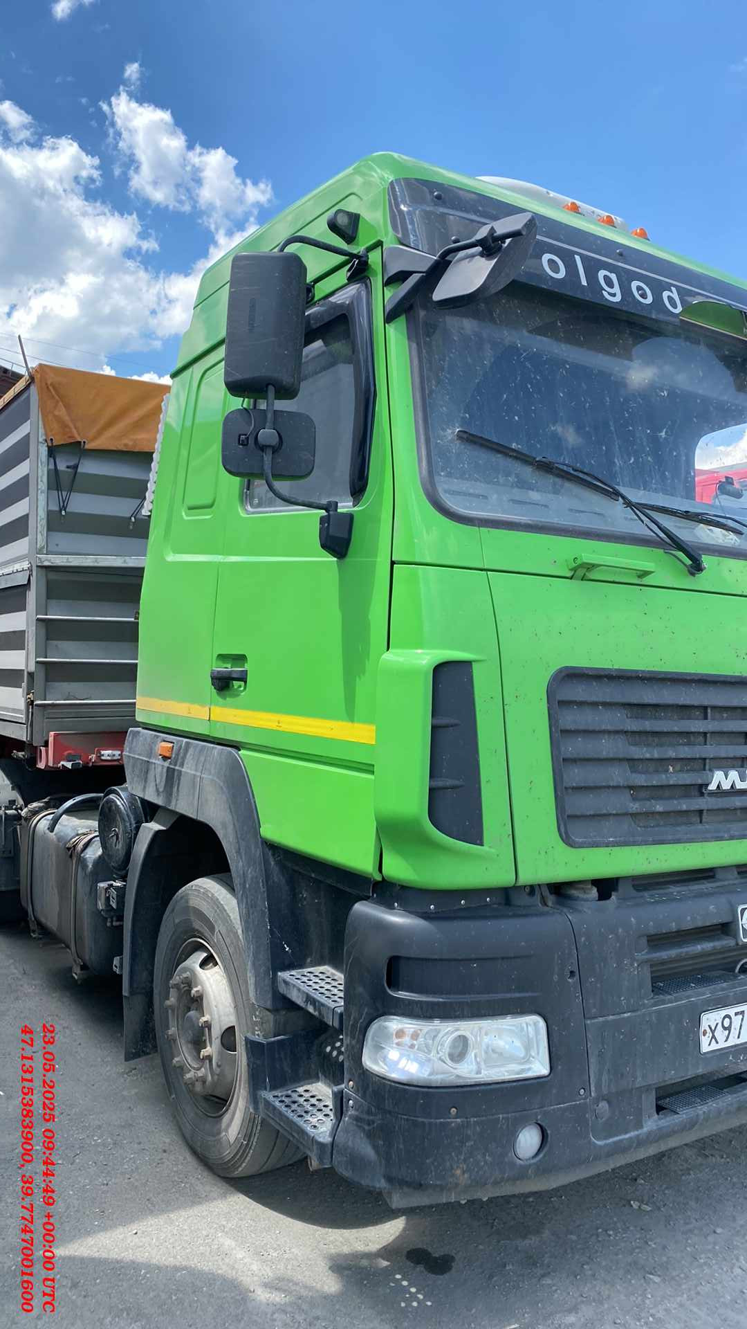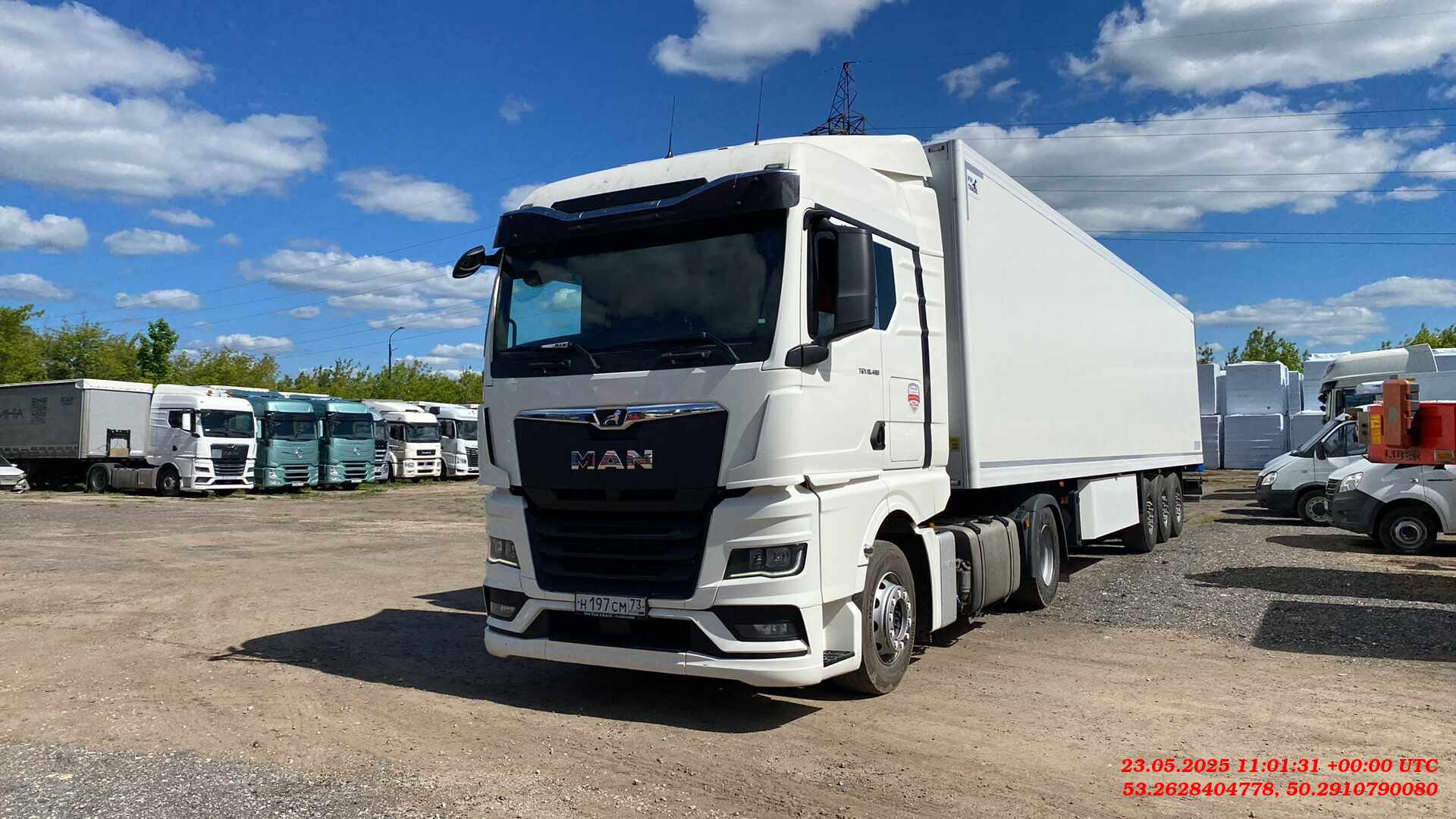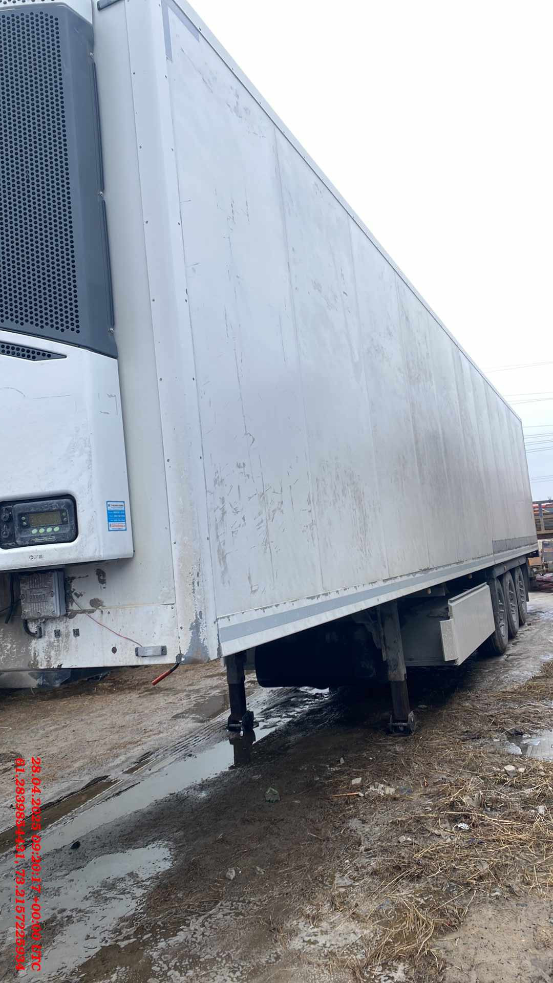 Лизингодатели: Полуприцеп-рефрижератор CTTM Cargoline 972200 2018 года выпуска. Некоторые характеристики: Конструкция рамы: сварная, усиленная, адаптирована для эксплуатации в сложных дорожных условиях. Оси и подвеска: пневматическая, с клапаном подъёма и опускания платформы H/S, межосевое расстояние — 1 310 мм, 3 оси SAF Custom Design, каждая грузоподъёмностью 9 000 кг, с балкой круглого сечения. Тормозная система: дисковые тормоза, с ABS, автоматическая регулировка, стояночный тормоз пневматический с приводом от энергоаккумуляторов на две оси. Электрооборудование: двухпроводная система, рабочее напряжение 24 V, 2 соединительные розетки, задние осветительные фонари, освещение номерного знака, габаритные огни. Шины и диски: ошиновка односкатная, запасное колесо в комплекте, шины размерности 385/65 R 22,5, диски из высокопрочной стали. Кузов: изотермический, соответствует сертификату FRC для перевозки продуктов питания до –20 °С, жёсткие тепло-влагоизолирующие усиленные панели из полиуретановой пены. |