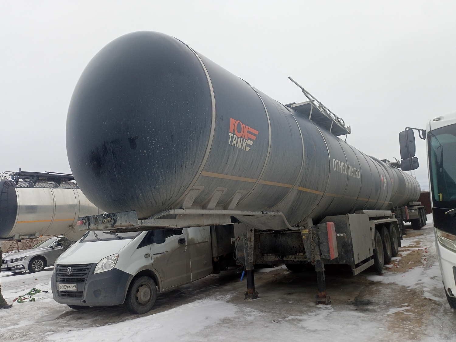 Описание: Полуприцеп-цистерна FoxTank для перевозки и временного хранения темных нефтепродуктов (Нефть) ОСНОВНЫЕ ХАРАКТЕРИСТИКИ ППЦ3-ТН-38 Марка, модель966611 ТЕХНИЧЕСКИЕ ХАРАКТЕРИСТИКИ Габаритные размеры (Длина х Ширина х Высота)На чертеже Высота ССУ1450 - 1500мм КОНСТРУКЦИЯ Предназначение Нефть Тип конструкцииСамонесущая на подкатной тележке. Объем38м3 Количество отсеков (стандарт)1 шт. Объёмы (38) Экологический коробВокруг заливного люка Модель корпусаКруглое сечение Материал корпусаСталь 09Г2С Толщина стенки сосуда5 мм Подкатная тележкаДвутаврового сечения ОБОРУДОВАНИЕ ЦИСТЕРНЫ Верхний налив Люк (заливная горловина) бензиновый ДУ 250, усиленный. Металлоконструкция/Technometal/ТУ завода. Открывание по направлению движения автопоезда. Дыхательный клапан под давление / Люк Битумный 500 для темных нефтепродуктов на выбор Система сливаГравитационный общий слив на заднюю часть цистерны. Диаметр слива100мм (утепление коллектора) Расположение сливаСзади без ящика Запорная арматураДонный клапан ТН. Ручное управление справа. Дублирующий кран (внешний слив)Шаровый кран битумный с ручным управлением Аварийный сливДа, D100 (на болтовом крепление) Опорные лапыТУ завода Шкворень2 дюйма/3,5 дюйма в комплекте ПеналАлюм. Квадратный пенал (экструдированный профиль) - 2шт. 4м по одному с каждой стороны Сливные рукава4м. – 2 шт. Тип БРС сливного рукаваПо согласованию с заказчиком Уровень пола Заднее защитное устройствоБампер стальной, кронштейны боковой защиты соответствуют требованиям ГОСТа Р 50913-96. Противооткатный брус. Расположение бампера – верхний, разрезной. ПЛОЩАДКА ОБСЛУЖИВАНИЯ Рабочая площадка Вокруг горловины ПоручниАлюминиевые, складываемые с правой стороны ЛестницаИз нержавеющего сплава со ступенями, исключающими скольжение для доступа на рабочую площадку, с правой стороны ЭЛЕКТРООБОРУДОВАНИЕ -Электрооборудование Atlanta/ТУ завода гибрид 24В (класс 3 ADR): -Одна 15-ти-клеммовая розетки; -Розетка ABS; -Жгуты проводов для подключения элементов системы освещения и сигнализации; -Два задних комбинированных фонаря, выполняющих функции габаритных огней, -Указателей поворотов, сигналов торможения, противотуманных фонарей, фонарей заднего хода и освещения государственного регистрационного знака; -Два фонаря полного габарита на гибкой основе; -Два передних габаритных фонаря, совмещенных со световозвращателями белого цвета; -Два задних световозвращателя красного цвета треугольной формы, входят в состав задних комбинированных фонарей. ОСЕВЫЕ АГРЕГАТЫ Оси PMD (Турция) барабан (аналог BPW) Пневматическая Количество осей3 шт. 1 ось подъёмная Межосевое расстояние1370мм Максимальная тех. нагрузка на ось12 тонн Тормозные механизмыБарабанные Тормозная системаДвухконтурная пневматическая тормозная с ABS Стояночный тормозЭнергоаккумуляторы на 2 оси КолесаБескамерные односкатные шины 385/65 R22.5 на стальных дисках (6 колес + 1 запасное). КрыльяМоно крыло из Алюминия с брызговиками (2шт.) ОКРАСКА Окраска цистерны Предварительная дробеструйная обработка с последующей эпоксидным грунтом и окрашиванием полиуретановой эмалью. Черный RAL 9005 Окраска рамыПредварительная дробеструйная обработка с последующей эпоксидным грунтом и окрашиванием полиуретановой эмалью. Цвет черный RAL 9005 ТЕРМИЧЕСКАЯ ИЗОЛЯЦИЯ Материал утеплителя Isover фольгированный. Толщина утеплителя200мм Наружная 