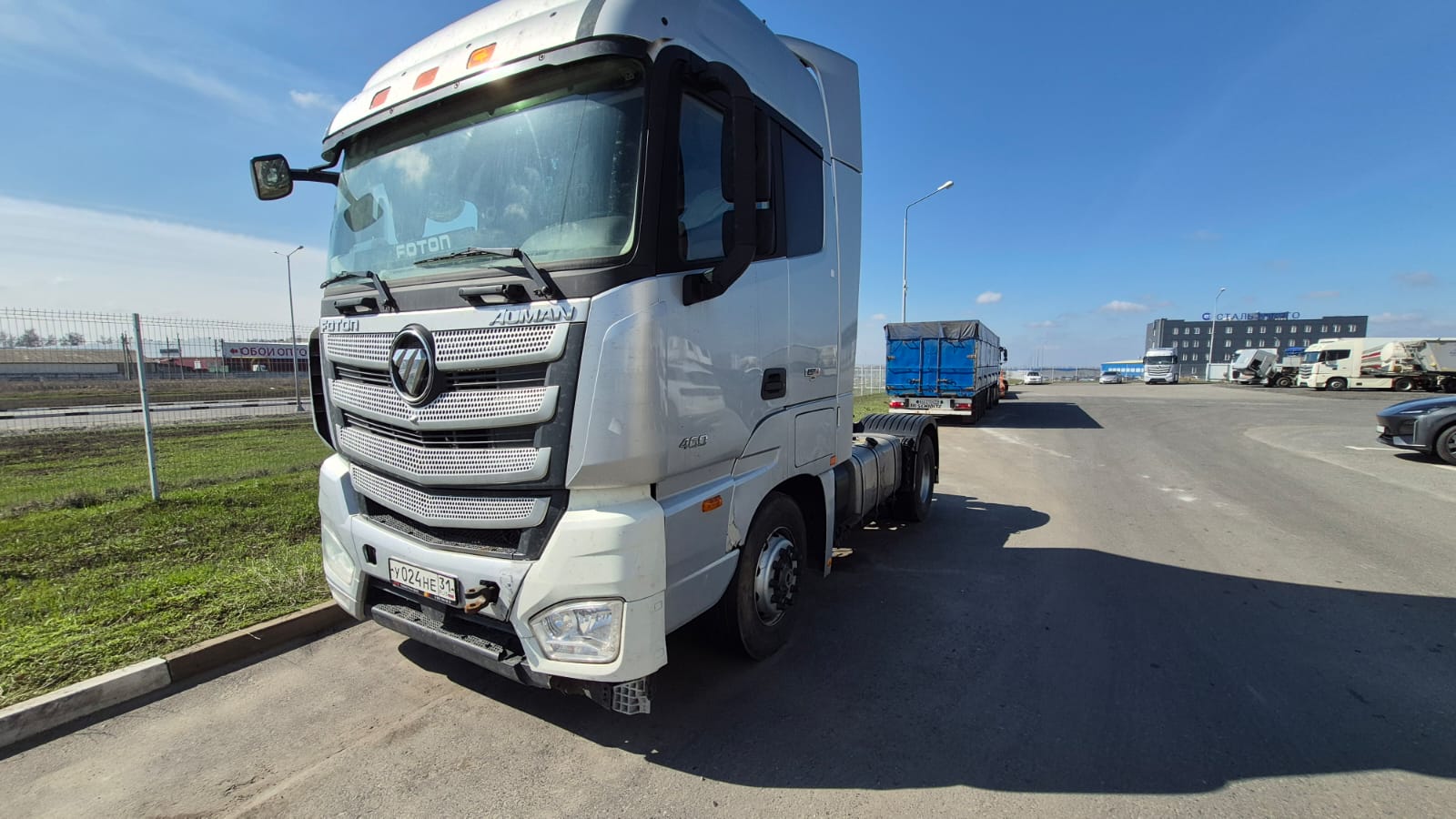 Описание: Ответственный Стешинский Денис FOTON EAUMAN EST 1846АMT Основное Коммерческое наименование 1846 AMT Назначение Седельный тягач Колесная формула 4х2 Тип кабины Высокая Цвет Серый Год выпуска 2023 Двигатель Модель двигателя Cummins ISG12e5460 Экологический класс Евро-5 Достижение уровня экологичности Встроенный нейтрализатор и система селективной катал итической очистки (SCR) Топливный фильтр грубой очистки (с подогревом) + (+) Топливный фильтр тонкой очистки (с подогревом) + (+) Тип Дизельный, 4-х тактный, турбонаддув с промежуточным охлаждением (интеркулер), система питания - common-rail Кол-во и расположение цилиндров 6 в ряд Объем, (см3) 11 800 Максимальная мощность, (кВт (л.с.) / об/мин) 346 (470) / 1 800 Максимальный крутящий момент, (Н•м / об/мин) 2 193 / 1 000 - 1 400 Вид топлива Дизель Трансмиссия Тип Автоматическая, 12-ступенчатая Производитель ZF Модель ZF-12TX2420TD Передаточные числа вперед 16.690; 12.920; 9.930; 7.670; 5.900; 4.570; 3.660; 2.830; 2.170; 1.680; 1.290; 1.000 Передаточные числа назад 15.540; 12.030; 3.400; 2.640 Передаточное число главной передачи 2.846 Массы, (кг) Полная масса транспортного средства 18 000 Полная масса автопоезда 45 000 Снаряженная масса транспортного средства 7 620 - 8 040 Максимально допустимая нагрузка на переднюю ось 6 500 Максимально допустимая нагрузка на заднюю ось 11 500 Габаритные размеры, (мм) Длинна 6 055 Ширина 2 490 Высота б/з учета спойлера/ с учетом спойлера 3660/3800 Колесная база 3 600 Передний свес 1 450 Задний свес 1 035 Колея передних колес 2 021 Колея задних колес 1 829 Минимальный дорожный просвет (по заднему мосту) 162 Высота седельно-сцепного устройства 1 150 Сцепление Тип Однодисковое, сухое, с диафрагменной пружиной, привод пневматический Тормозная система Тип Пневматический двухконтурный привод, с разделением на контуры передней и задней оси Передние тормоза Дисковые Задние тормоза Дисковые ABS / ASR / ESP + / + / + Стояночный тормоз Пружинные энергоаккумуляторы на задней оси Вспомогательная Моторный тормоз (Jake brake) Передняя подвеска Тип Зависимая, на продольных полуэллиптических листовых рессорах Кол-во листов рессор 3 Гидравлические амортизаторы + Стабилизатор поперечной устойчивости + Задняя подвеска Тип Зависимая, на 4-х пневмобаллонах Гидравлические амортизаторы + Стабилизатор поперечной устойчивости + Топливная система Ёмкость топливного бака слева, (л) 490 Ёмкость топливного бака справа, (л) 350 Подогрев основного топливного бака + Ёмкость топливного бака для мочевины, (л) 65 Электрооборудование Аккумуляторные батареи 180 Ач Генератор 110 А Напряжение бортовой сети 24 В Шины Передняя ось 315/70R22.5 Задняя ось 315/70R22.5 Диски Передняя ось 12R22.5 Задняя ось 12R22.5 Внешнее оборудование кабины и шасси Подвеска кабины Четырехточечная пневматическая Опрокидывание кабины Ручной и электрический привод Верхний спойлер + Боковой спойлер + Боковые обтекатели на топливных баках + Крылья задних колес Пластиковые съемные Переходной мостик + Инструментальный ящик наружный (верхний и нижни й) + Внутреннее оснащение кабины Количество спальных мест 2 Водительское сиденье На пневмоподвеске с подогревом Пассажирское сиденье Складное с откидной спинкой Электропривод стеклоподъемников + Электропривод боковых зеркал + Подогрев боковых зеркал + Радио FM / AM / USB + / + / + Акустическая система (4 динамика) + Прикуриватель + Воздушный отопитель + Кондиционер + Центральный замок + Холодильник + Круиз-контроль + Пневматический звуковой сигнал + Сигнал 