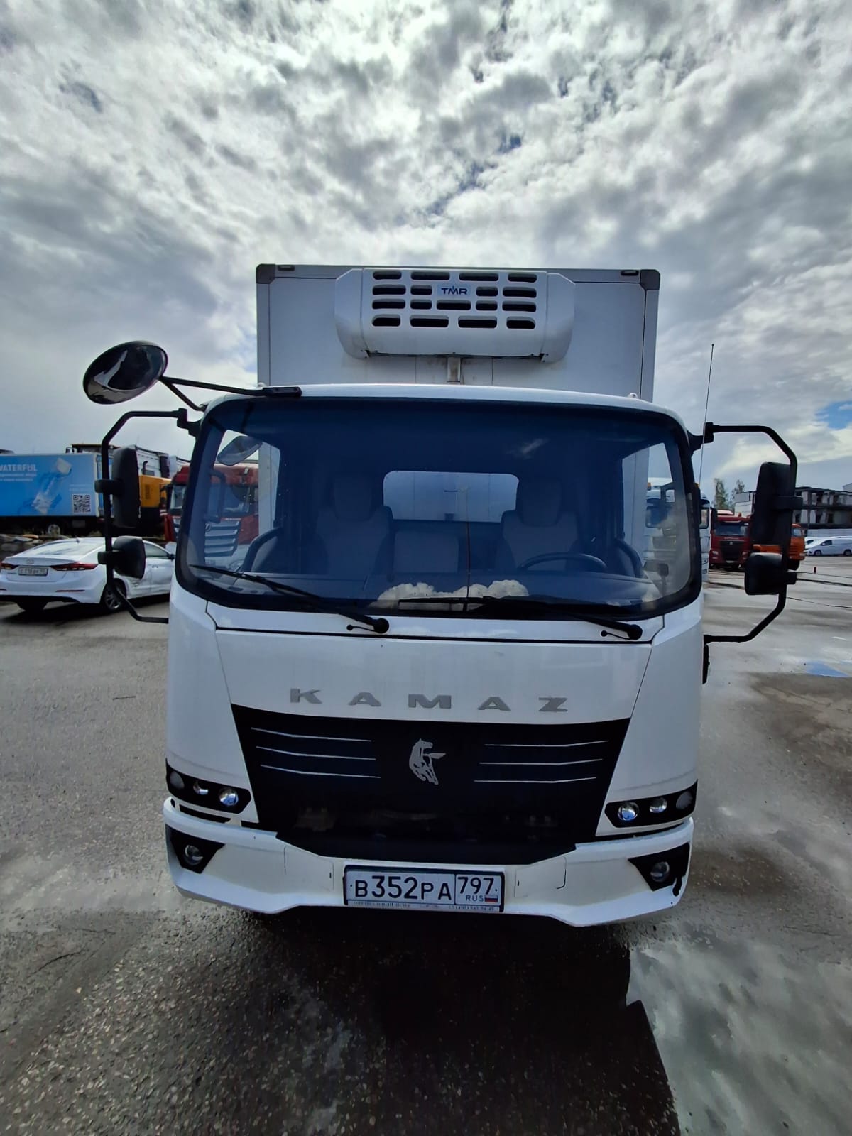 Лизингодатели: Автомобиль/бренд: КАМАЗ Модификация 43089 - 44411-F5 Модель/Шасси: Компас 9 Без спальника Надстройка: D95BN191FG, 6300х2600х2500, Изотермический кузов из сэндвич-панелей 3-х слойный (плакированный металл, утеплитель 60 мм) Дополнительное оборудование ХОУ Т-700 H TMR Спецификация Модификация 43089 - 44411-F5 Категория N2 Колесная формула 4х2 Масса, (кг) Полная масса, кг 9 500 Снаряженная масса шасси, кг* 3 240 Грузоподъемность шасси, кг 6 260 Габаритные размеры, (мм) Длина 7 845 Ширина 2 116 Высота 2 300 Колесная база 4 475 Колея передняя/ задняя 1 710 / 1 650 Дорожный просвет 160 Двигатель Модель Cummins ISF 3.8 S5154 Тип Четырехтактный дизель (Common Rail), с турбонаддувом Экологический класс 5 Рабочий объем, (л / см3) 3.8 / 3 760 Степень сжатия 17,2 Макс. мощность, (кВт (л.с.) / об/мин) 112 кВт (152 л.с.) / 2 600 об/мин Макс. крутящий момент, (Нм / об/мин 491 Нм / 1 200 – 1 900 об/мин Обработка выхлопных газов SCR (Selective Catalytic Reduction, селективное/выборочное каталитическое восстановление) Трансмиссия Тип Механическая, 6 ст. (Fast Gear LC6T540B) Передаточные числа 1 – 6,091 / 2 – 3,65 / 3 – 2,274 / 4 – 1,478 / 5 – 1 / 6 – 0,774 / R – 5.645 Сцепление Тип Однодисковое сухое, привод: гидравлический с пневматическим усилителем Главная передача Тип Гипоидная Передаточное число 4,1 Тормозная система Тип Пневматическая с антиблокировочной системой ABS, с противобуксовочной системой ASR и системой курсовой устойчивости ESC (Electronic Stability Control) Передние / задние механизмы Барабанные Вспомогательный моторный тормоз есть Топливный бак Объем, (л) 220 Подвеска Тип Полуэллиптические рессоры с телескопическими гидравлическими амортизаторами, со стабилизатором поперечной устойчивости на задней оси Рулевое управление Привод С гидроусилителем Рама Тип рамы Лестничного типа с лонжеронами постоянного сечения Размер лонжерона, мм 215 х 70 х 5 Расстояние между лонжеронами, мм 850 Шины Тип 215/75R17,5 Электрическая система 24 В Аккумулятор 100 Ач. / 2 шт. Другие характеристики Внешний габаритный радиус поворота (по переднему буферу) не более, м 9,0 Максимальная скорость, км/ч 109 Угол преодолеваемого подъема, % (град) 24 (14°) Кабина Тип Цельнометаллическая, тоннельного типа, двухместная Ширина, мм 1 995 Наличие спального места нет Подвеска кабины 4-х точечная, спереди на торсионе сзади на резиноупругих элементах. Базовая комплектация Бампер окрашенный в цвет кабины Галогеновые фары Дневные ходовые огни Стеклоочистители с интегрированными форсунками омывателя (с прерывистым режимом работы) Инструментальный ящик (закреплен на лонжероне) Регулируемое кресло водителя Улучшенная текстильная обивка сидений Рукоятки на передних стойках для облегчения посадки в кабину Пепельница (каждой двери) Прикуриватель Вешалка для верхней одежды Подстаканник Потолочные ниши 2 солнцезащитных козырька Карманы в обивке двери (водителя и пассажира) Спинка-столик (центрального сидения) Запирающаяся крышка топливного бака Телескопическая и регулируемая по углу наклона рулевая колонка Предупредительный звуковой сигнал заднего хода (синхронизированный с передачей заднего хода) Антиблокировочная система (ABS) Система стабилизации (ESС) Многофункциональный дисплей в панели приборов Запасное колесо Упор противооткатный (2 шт.) Центральный замок Два складных ключа с дистанционным открытием/закрытием Защита АКБ (пластик) Выключатель массы Электрические стеклоподъемники боковых дверей Кондиционер Аудиосистема MP3 + USB (2 дин