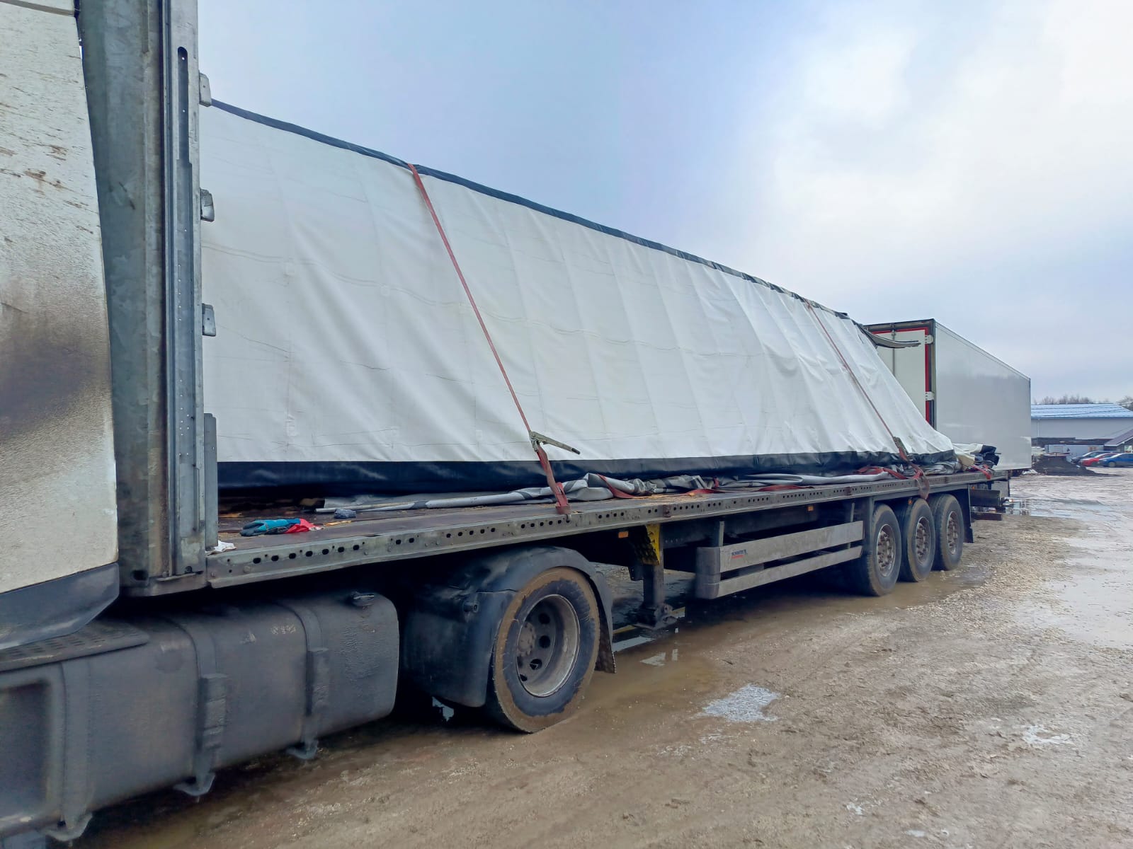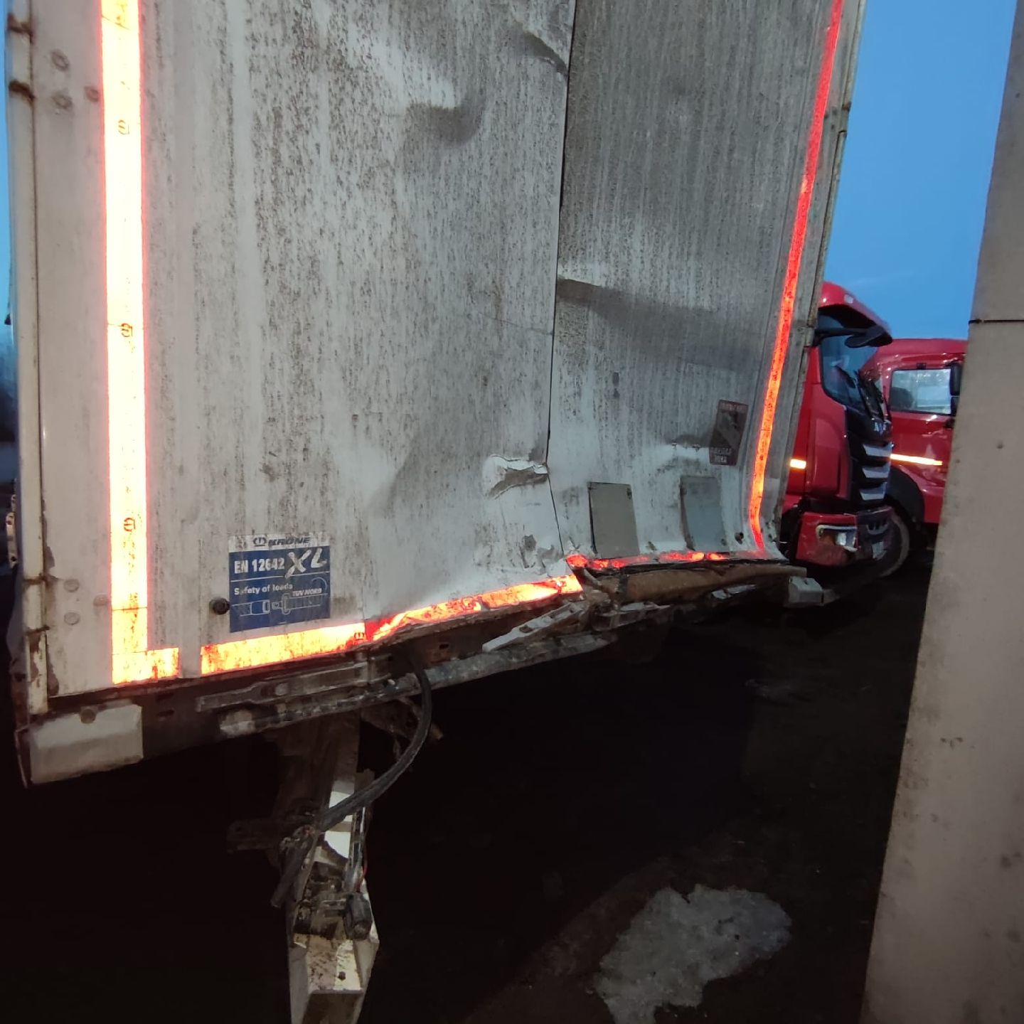 Лизингодатели: Технические характеристики/Описание В соответствии с российским утверждения в TC RU E-DE.MT02.00555 году включены приложение EAC Icon и российский номер официального утверждения типа на заводской табличке Максимально допустимая нагрузка на шкворень: 12.000 kg Максимально разрешенная нагрузка на ось: 24.000 kg Допустимый общий вес 36.000 kg Максимально технически допустимая нагрузка на шкворень: 12.000 kg Максимально допустимая техническая нагрузка на ось: 27000 кг. Максимально допустимый общий вес: 39000 кг. Подходит для седельного тягача по стандартам ISO 1726 Высота ССУ без нагрузки: 1.150 mm Шасси Сварная металлическая конструкция, состоящая из двух Т-образных лонжеронов и поперечин, а также внешней рамы с поперечинами и удлинениями Много замковая внешняя рама \"Мультилок\" для универсального крепления груза с крепежными позициями через каждые 100 мм Высота рамы в передней части: 125 мм (включая пол и седельную плиту) Внутренняя погрузочная длина 13 620 мм Внутренняя погрузочная ширина 2 480 мм 2\"-шкворень (радиус поворота в передней части 2.040 мм) Задний противоподкатный брус по нормам ЕС боковая защита согласно нормам ЕС Фиксатор двери Опорное устройство Две механические стойки, 2х12 т, с полукруглой пятой, производитель по нашему выбору Управление опорными стойками с одной стороны, справа Оси 3 оси с допустимой нагрузкой 9 000 кг каждая Центрирование дисков Оси SAF с пневмоподвеской и дисковыми тормозами Шины 6 шт. 385/65 R 22.5, Держатель запасного колеса Крепление запасного колеса корзинного типа за колесной тележкой, справа Второе крепление запасного колеса корзинного типа, размещаемое напротив В соответствии с шинами автомобиля Защита колёс от грязи Пластиковые крылья Покрытие на крыльях, препятствующее образованию брызг в соответствии с директивой ЕG Тормозная система Тормозная система в соответствии с директивами ECE R13 Стояночный тормоз с энергоаккумулятором Подключение тормозных шлангов на высоте около 800 мм над платформой Диагностический разъем по нормам ISO7638 (кабель питания EBS) 2 противооткатных клина Разъем для подключения Palm Внимание: использование прицепа допускается только с тягачом, оснащенным системой ABS! Система EBS, 2S/2M, 2 датчика на одной оси Осветительное оборудование Световые и сигнальные приборы в соответствии с директивами EG 76/756/EWG и последующими или директивой UN ECE № 48 2 лампы подсветки номерного знака Разъемы электрических кабелей спереди, примерно на 300 мм над платформой 2 светодиодных габаритных фонаря на резиновых кронштейнах Боковые светодиодные габаритные огни Передняя стенка Стальная передняя стенка со стационарными угловыми стойками, боковая загрузка ограничена Кронштейны для пломбировочного троса на передней стенке Задняя стенка Стальные задние двери контейнерного типа, включающие стальной портал на болтах, встроенные замки и скрытые петли; траверса крыши откидная, сдвигается вместе с крышей Задняя дверь окрашенная Двойные запоры для контейнерной задней двери Натяжитель тента на заднем портале с трещоткой Боковые борта Без бортов |