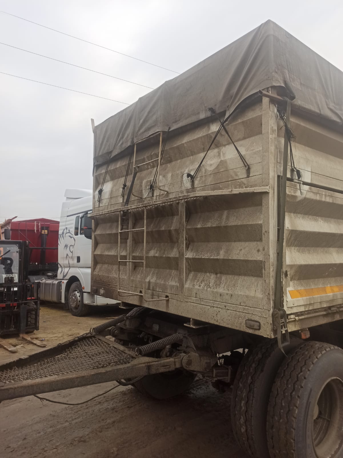 Описание: Прицеп для перевозки зерна 6535ТР-02 Год выпуска Количество осей Полная масса Размеры кузова: Объем кузова, куб.м2023 3 24 000 кг 8 068*2530*1800 мм 36 куб.м Колесная формула:3/12+1 Собственный вес 5900 кг РамаСварная, с двумя лонжеронами из двутавров переменного сечения, изготовленных из высокопрочной стали ПодвескаПередняя - рессорная, задняя – рессорно-балансирная с регулируемыми штангами Тормоза: - рабочийБарабанный с пневмоприводом, выполненным по двухпроводной системе с АБС - стояночныйПружинный энергоаккумулятор Электрооборудование:Однопроводная система постоянного тока напряжением 24В Разгрузка: осуществляется: через боковые нижние борта с двух (трех) сторон; Прицеп оборудован пологом со сматывающим устройством, в передней части и на заднем борту установлена площадка для обслуживания полога. Внутри кузова (на каждой стойке) установлены крестовые стяжки бортов (съемные) Конструкция кузова (все открывающиеся борта оборудованы нащельниками): - Усиленный передний борт - Боковые стороны кузова: Верхние борта: - глухие, Нижние борта: - с верхней навеской открываются снизу вверх, - Задний борт: распашные ворота |