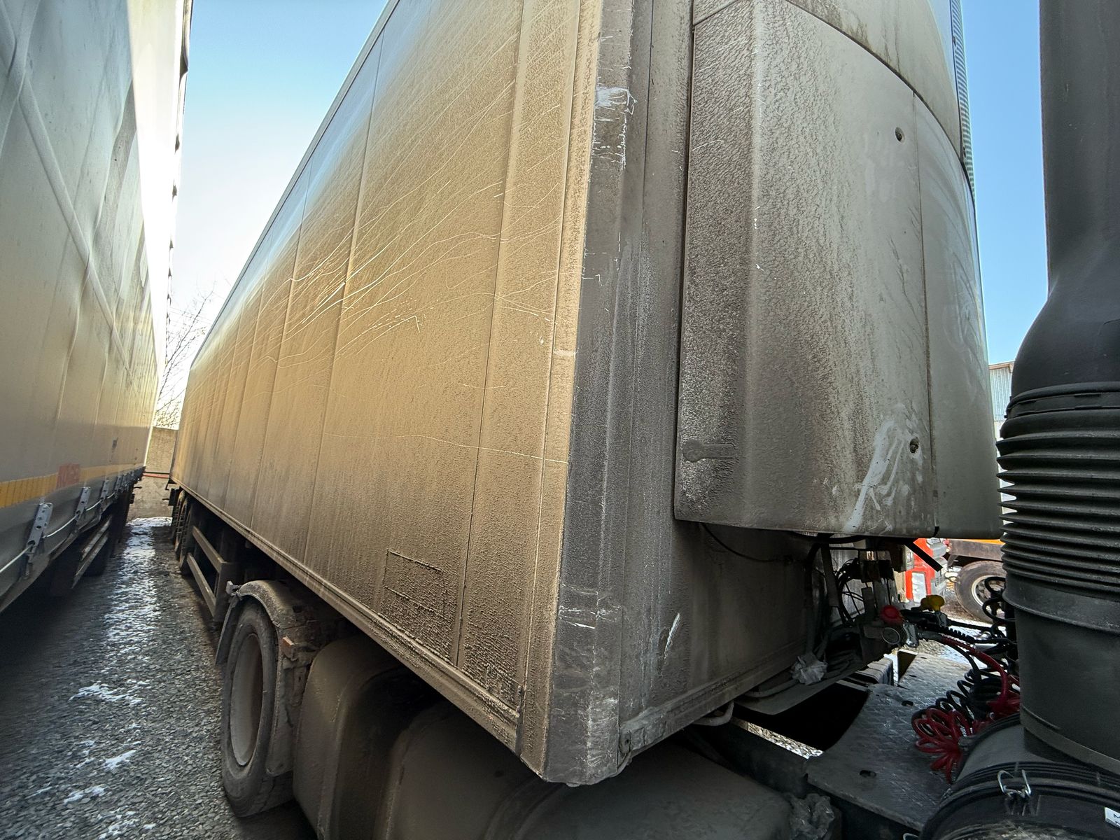 Лизингодатели: Полуприцеп рефрежератор «Купава 93W000». 1.Шасси Wielton Рама Изготовлена из конструктивной стали повышенной прочности Шасси Wielton ?3-осное дисковое SAF ? нагрузка на ось до 8000 кг, ?пневматическая подвеска, ?автоматически подъемная первая ось, ?клапан подъема и опускания платформы H/S, ?плита сцепки с 2-дюймовым сцепляющим болтом (JOST), ?двухдиапазонные подпорные ножки (JOST), ?задний буфер, ?боковые алюминиевые защиты, ?высота седла 1150 мм ?расстояние между осями 1355мм Тормозная система ?соответствующая требованиям Европейских директив, WABCO ?автоматическая регуляция тормозов, ?антиблокировочная система ABS/EBS 2S1M, возможность кратковременного увеличения нагрузки на ось тягача Электроинсталяция ?24 v согласно с требованиями Европейских директив, ASPOK ?задние фонари пятикамерные, ?освещение регистрационных знаков, ?габаритные огни, боковые катафоты, ?таблицы - отражатели, ?2 присоединительных гнезда и гнезда ABS/EBS на передней стенке, Лакировка ?все стальные элементы перед покраской проходят 2-ую дробеструйную обработку (очистка под давлением металло-стружкой), ?покраска в камерах лакокрасочных стандартно на черный цвет RAL 9005, Колеса ?диски колес – стальные 2.Кузов «Купава» Коэффициент теплопроводности – 0,336 Вт/м2 0С наружная обшивка – окрашенная полимером оцинкованная сталь; внутренняя обшивка – окрашенная полимером оцинкованная сталь; материал утеплителя – пенополиуретан; Толщина панелей: крыша – 80мм; передняя стенка – 80мм; боковая стенка – 60мм; двери – 80мм; пол – 135мм; покрытие пола – полиуретановая заливка; дверной проем задний – нержавеющая сталь; наружная окантовка кузова – алюминиевыми профилями; такелажная рейка – один ряд; фурнитура – нержавеющая; запорные механизм – по 1 шт. на каждую дверь; фиксатор дверей в открытом состоянии; выдвижная лестница; внутреннее освещение кузова. Внутренние размеры кузова: длина – 13 385 мм; ширина – 2 468 мм; высота – 2 555 мм. ХОУ Termo King 200 темп. режим -20/+4 Разрешенная максимальная масса полуприцепа - 39 000 кг. Масса без нагрузки полуприцепа – 7 880 кг. |