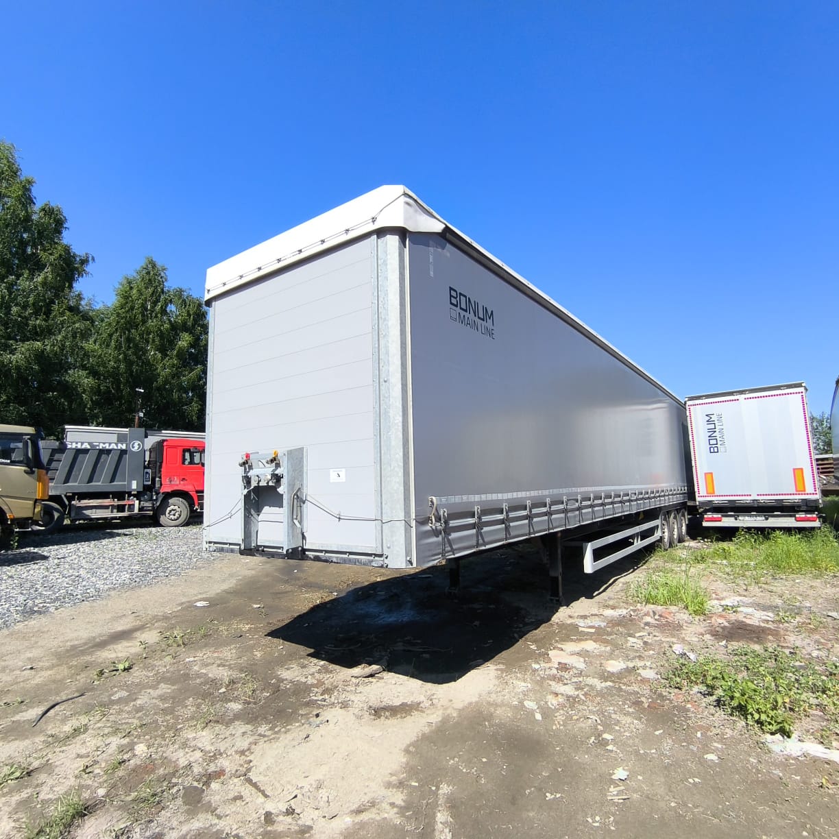 Описание: Полная масса прицепа в снаряженном состоянии 6450 кг Технически допустимая грузоподъемность прицепа 23550 кг Технически допустимая общая масса прицепа 30000 кг Нагрузка на первую ось 10000 кг Нагрузка на вторую ось 10000 кг Нагрузка на третью ось 10000 кг Межосевое расстояние 1-ая и 2-ая оси 4150 мм Межосевое расстояние 2-ая и 3-ья оси 1370 мм Расстояние между рессорами 900 мм Колея колес внутренних 1440 мм Колея колес наружных 2160 мм Габаритная длина 9950 мм Габаритная ширина 2550 мм Габаритная высота max 3650 мм Погрузочный объем 40 м3 Высота платформы по центру оси в ненагруженном состоянии 1375 мм Высота платформы по центру оси в нагруженном состоянии 1330 мм Техническое описание: Рама Рама прицепа служит основанием платформы для установки специализированного оборудования и представляет собой сварную конструкцию из ложементов двутаврового сечения, соединенных между собой поперечинами. Рама поворотной тележки Рама поворотной тележки сварная. К лонжеронам рамы прикреплены кронштейны подвески. К передней поперечине рамы крепятся кронштейны дышла. Подвеска Оси трубчатого сечения с барабанным тормозным механизмом размером 420х160 (тормозные колодки). Подвеска рессорная «МАЗ» (1-ая ось), подвеска рессорно-балансирная «МАЗ» (2-ая и 3-ья оси). Оси колес прицепа предусматривают установку двускатных дисковых колес. Пневмотормоза Рабочая тормозная система пневматическая, двухпроводная оборудована АБС, состоит из головок соединительных, фильтров магистральных, воздухораспределителя, ресиверов с кранами слива конденсата, клапанов контрольного вывода, регулятора тормозных сил, тормозных камер и модуляторов. Стояночная тормозная система действует через пружинные энергоаккумуляторы на колодки рабочего тормоза второй и третьей оси. Электрооборудование АБС. АБС (4S/3M). Пневматическое соединительное устройство расположены впереди рамы на кронштейне и подключается к системе электропитания тягача через кабель с разъемом по ISO 7638. Датчики АБС установлены на первой и третьей оси. АБС фирмы БПО «Экран», допустимая установка «Wabco». Шины Шины 315/80R22,5 тип протектора универсальный. Колеса дисковые, крепление стандартными болтами и гайками, диаметр отверстия 26 мм, покрышка колеса широкопрофильная, бескамерная. Шины СНГ. Шасси Установка стопора. Стопорное устройство поворотной тележки полуавтоматического действия, предназначено для стопорения тележки при прямолинейном движении прицепа задним ходом. Установка поворотного круга. Установка дышла. Дышло представляет собой жесткую, сварную конструкцию треугольной формы, состоящую из труб, соединенных между собой поперечинами. Дышло шарнирно соединено с рамой поворотной тележки посредством осей. Беззазорная сцепка O50. Установка брызговиков задних. Установка брызговиков передних. Монтаж противооткатных упоров. Боковая защита согласно Правилам ЕЭК ООН №73. Держатель в виде корзины для одного запасного колеса. Стальная защита от въезда сзади (бампер) согласно Правилам ЕЭК ООН №58. Установка настила Настил состоит из ламинированной водостойкой фанеры (панелей) толщиной 27 мм. Листы расположены между продольными балками и наружной рамой. Поверхность панелей с сеточным покрытием. Цвет – черный, коричневый. Установка специализированного оборудования Устанавливаются ложементы из высокопрочной стали марки S700. Креплен