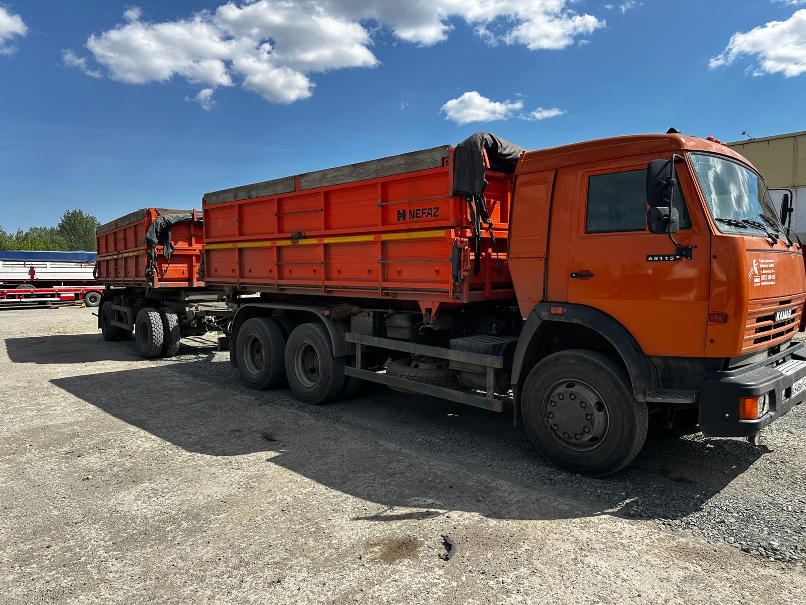 Лизингодатели: самосвал КАМАЗ 45143-15 Модель КАМАЗ 45143-Е2 (КАМАЗ 45143-15) Комплектация Боковая разгрузка, МКБ, МОБ, двигатель КАМАЗ- 740.30-260, ТНВД ЯЗДА, КПП КАМАЗ 154, ДЗК, боковая защита, исп. \"ЮГ\" (аудиосистема + 2 аудиоколонки, защитная сетка на приборы светотехники (задние, головные, ПТФ), напольные коврики резиновые, автономный воздушный отопитель \"Планар 4Д\", кондиционер 3,5 кВт), шины 11.00R20 / 11R22,5, топливный бак 500л. Масса снаряженного ТС, кг 9 850 Полная масса ТС, кг 21 950 Максимальная осевая масса, кг -на переднюю ось 5 270 -на заднюю тележку 16 680 Максимальная масса буксируемого прицепа, кг 14000 |