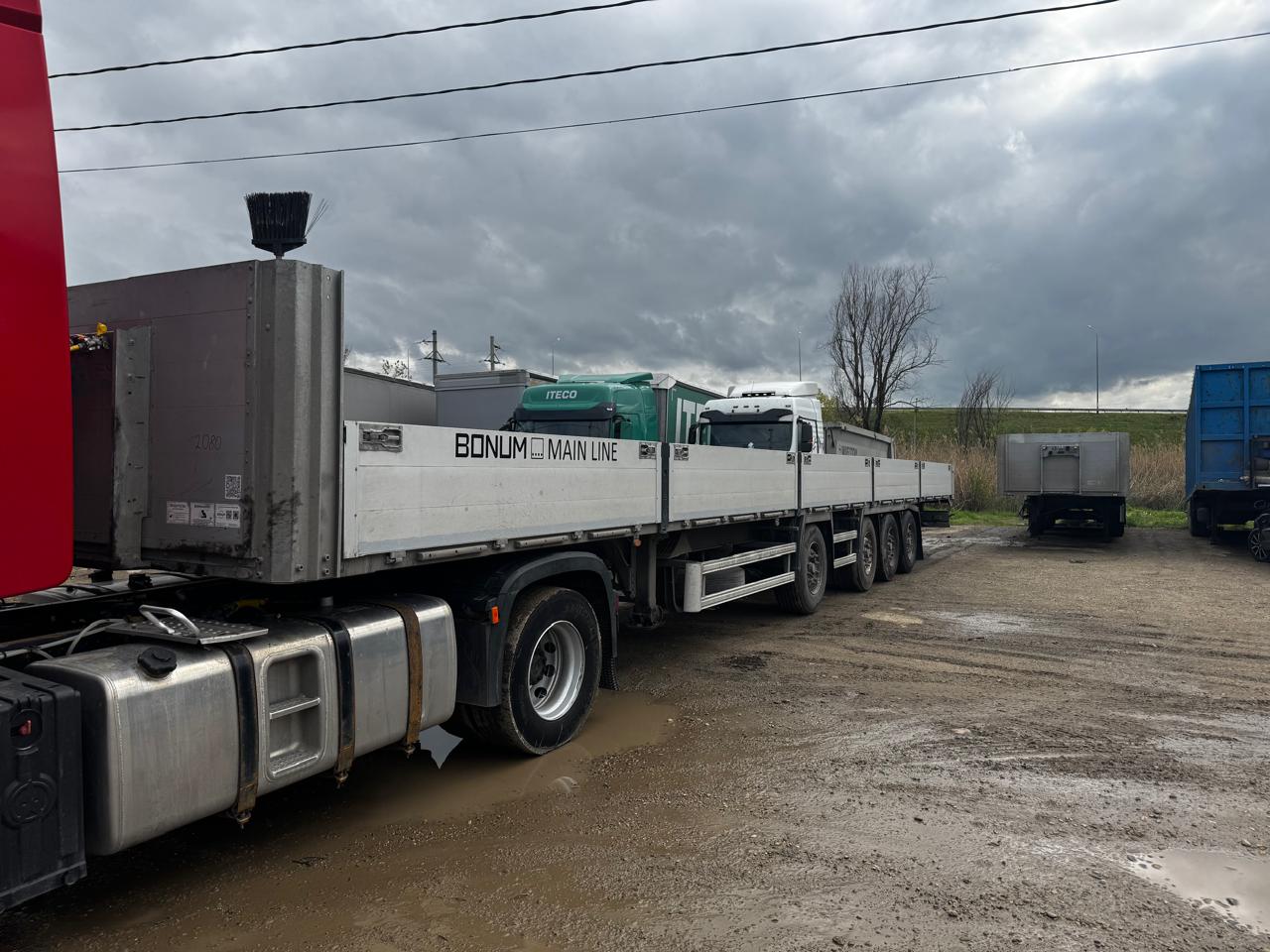 Лизингодатели: ТЕХНИЧЕСКИЕ ХАРАКТЕРИСТИКИ: - длина габаритная - 16 820 мм - высота борта - 600 мм - высота ССУ - 1 150 мм - 4+1 оси НJ - снаряжённая масса - от 6 900 кг КОНСТРУКЦИЯ ПОЛУПРИЦЕПА: - сварная рама усиленной конструкции из стали повышенной прочности S700 - шкворень 2” марки международного типа - стаканы под коники 80х80 мм по периметру рамы - ящик для хранения коников - потайные проушины по бокам рамы для крепления груза - пол из ламинированной фанеры 30 мм - две буксировочные проушины в задней части рамы - корзина для двух запасных колёс - боковая защита из алюминиевого профиля - заднее защитное устройство с панелью для фонарей ПОДВЕСКА И ШИНЫ: - 4 оси НJ (1-ая ось - вынесенная, 2 оси - подъёмные) - дисковые / барабанные тормозные механизмы - шины 385/65 R22,5 с диском ТОРМОЗНАЯ СИСТЕМА: - пневматическая двухконтурная тормозная система с ЕВS ЭЛЕКТРООБОРУДОВАНИЕ: - электрооборудование Аsроесk НАДСТРОЙКА БОРТОВОГО ПОЛУПРИЦЕПА: - передний портал 1200 мм из алюминиевого профиля со стальными стойками - 10 алюминиевых боковых бортов высотой 600 мм - 1 алюминиевый задний борт высотой 600 мм - 4 пары боковых съёмных стоек, 2 задние стойки - светоотражающая маркировка КОМПЛЕКТАЦИЯ: - крылья Dоmаr - 2 противооткатных упора Lоkhеn - инструментальный ящик Dаkеn с механизмом запирания на ключ Рама окрашена по фирменной трехступенчатой системе окраски «РRIМЕ SYSТЕМ» 1. обработка поверхности в дробеструйной камере 2. покрытие грунтом с содержанием антикоррозийных элементов 3. окраска премиальной эмалью |