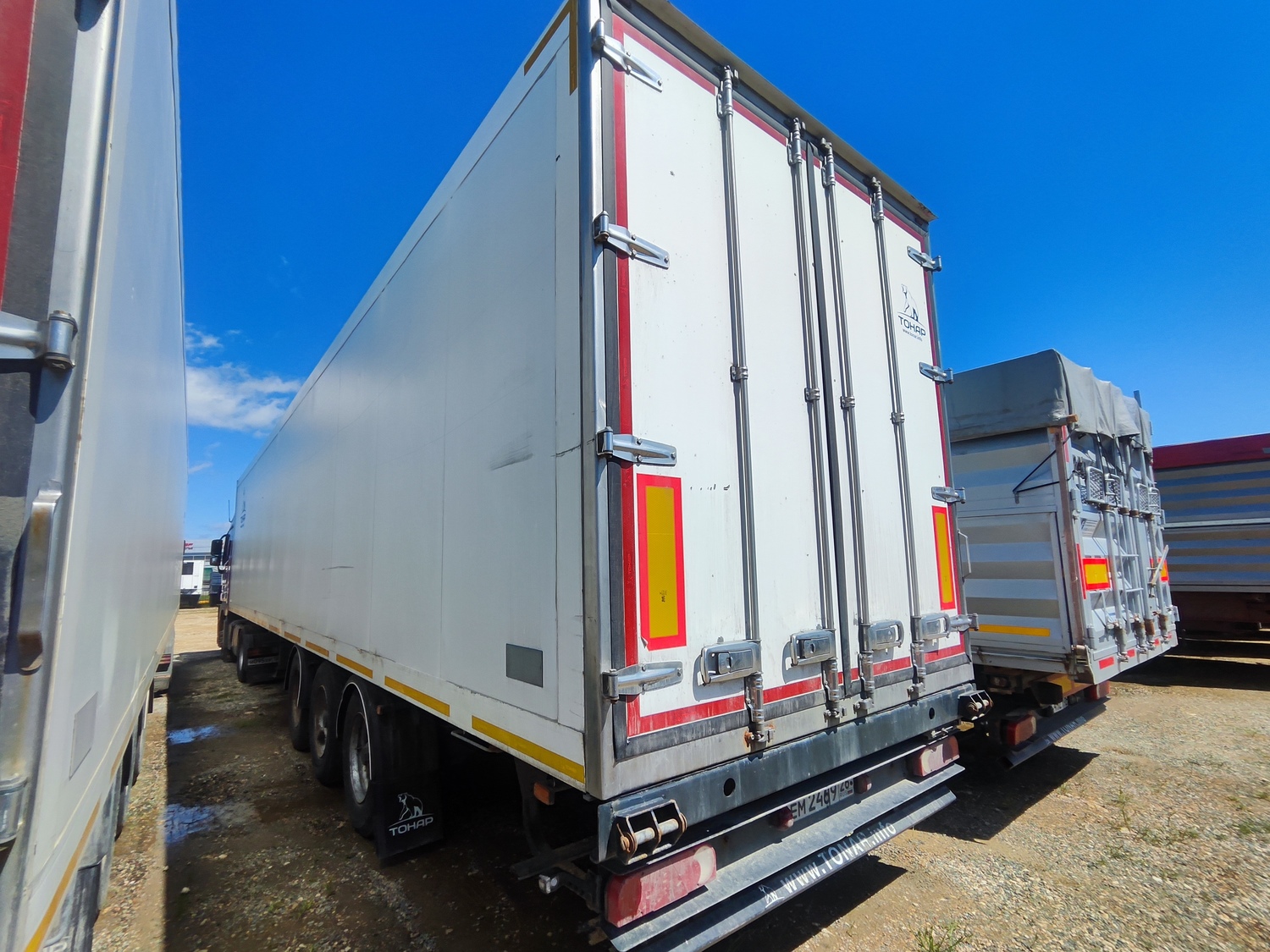 Лизингодатели: Полуприцеп SCHMITZ SKO 24 Рефрижератор, Усиленная рама, Ворота 4 запора, Оси SCHMITZ, дисковые тормоза, Шины: 385/65/22,5 Вес 8382 кг, Максимальный вес груза: 30930 кг, Внутренняя ширина 2,48 м, Внутренняя высота 2,60 м, Внутренняя длина 13,4 м, Тип подвески: пневмо-рессорная Паллетный ящик Установка Thermo King (13000 м.ч.) |