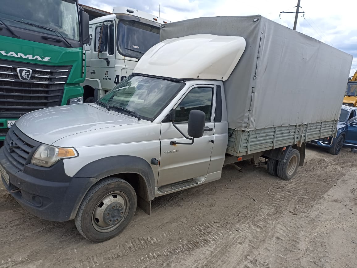 Лизингодатели: Ответственный Стешинский Денис Стандартная комплектация Безопасность Крепление кабины к раме на 8 точек Передние ремни безопасности инерционные Средний поясной ремень статический ABS + EBD Экстерьер Окраска эмалями неметаллик Колпаки передних колес черного цвета Окраска цветами металлик Передние, задние и боковые контурные огни Дополнительный стоп сигнал (на задней дуге каркаса тента) Табличка давления воздуха в шинах Измененный под базу 4180 мм жгут задних фонарей с разъемом для подключения светотехники Дополнительный силовой разъем рассчитанный на силу тока 50 А, совместно с предохранителем 40 А (в цепи) для возможности подключения в моторном отсеке Заглушка отверстия под антенну Стекла теплопоглощающие зеленые, заднее бесцветное не теплопоглощающее Лобовое стекло вклеенное без кронштейна салонного зеркала Диск запасного колеса (5,5Jх16Н2) серебристого цвета под 6 точек крепления (1 шт.) Задние фонари с размещением на платформе Локеры передних колес Облицовка радиатора черного цвета с логотипом УАЗ Передний бампер и молдинги черного цвета Ручки открывания дверей черного цвета Зеркала наружные с электрообогревом с креплением нижней опоры на панели двери Стальные диски (5,5Jх16Н2) серебристого цвета под 6 точек крепления (6 шт.) Повторители указателя поворота на крыльях увеличенные Орнамент \"PROFI\" Пороги в цвет кузова Защитные накладки на подножки противоскользящие, прорезиненные Боковая декоративная накладка вытяжной вентиляции (на боковой стойке) черного цвета Блок-фары галогенные с ДХО на лампах Шины 195/75 R16C (7 шт.) Комфорт Электроблокировка замков дверей Гидроусилитель руля Электростеклоподъемники передних дверей с мультиплексным управлением Управление электростеклоподъемниками на подлокотниках дверей Органайзер под 2-х местным сиденьем Комплект ключ зажигания с транспондером (мастер-ключ) (1 шт.) + пульт дистанционного управления (1 шт.) центральным замком и сигнализацией Иммобилайзер Сигнализация Аудиоподготовка (жгуты проводов для магнитолы и динамиков в дверях) Заглушка отверстия под магнитолу с нишей для мелких вещей Плафон и выключатель подсветки нижнего вещевого ящика панели приборов Блок индивидуального освещения водителя и пассажира Пневмоупоры капота Интерьер Обивки боковых дверей (литьевая технология), накладки ручек черные матовые Панель приборов soft-look (литьевая технология изготовления, дефлекторы с черными вставками) Комбинация приборов с функцией бортового компьютера 2-х стрелочная с подсветкой белого цвета Розетка 12В на панели приборов Рычаг коробки передач под BAIC без демпфера Заглушка прикуривателя Рукоятка рычага КП без хрома Облицовка стоек A (2018 г.) Верхний вещевой ящик Облицовка силового основания панели приборов Полка для документов на обивке крыши Держатель бутылки Облицовка задней стенки (2018 г.) Крючки для одежды (2 шт.) Угловые обивки для 3-х местной кабины (2018 г.) Противосолнечный козырёк пассажира с зеркалом Цельная обивка крыши (2018 г.) Поручни на стойке А (2 шт.) Подстаканник на задней стенке кабины Сиденье водителя без высотной регулировки и поясничного подпора. Обивка-ткань темная Двухместное пассажирское сидение с подлокотником. Обивка-ткань темная Облицовка двухместного сиденья Рулевое колесо без подушки безопасности - ИКАР Подрулевые переключатели с расширенным фу