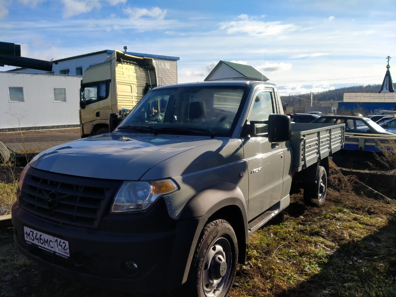 Описание: УАЗ Профи 2 поколение Борт с двойной кабиной 2.7 MT 4х4 Стандарт 4х4 236324-102 Обивка салона: Ткань Характеристики Кузов Ширина 1990 , без учета зеркал мм Снаряженная масса 2225 кг Высота 2520 (по тенту) мм Длина 5990 мм Полная масса 3500 кг Количество мест 5 Дорожный просвет 210 мм Грузовой отсек (Длина xШирина x Высота) 2350х1870 мм Колёсная база 3500 мм Колея задняя 1600 мм Колея передняя 1600 мм Нагрузка на переднюю/заднюю ось 1200/2300 кг Погрузочная высота 986 мм Тип кузова Бортовой грузовик Объём грузового отсека 7,2 м3 Количество дверей 2 Двигатель Тип двигателя Бензин Двигатель ЗМЗ - 409051 Диаметр цилиндра 95.5 мм Количество цилиндров 4 Максимальный крутящий момент 235,4 Нм Обороты максимального крутящего момента 2650±100 об/мин Обороты максимальной мощности 5 000±100 об/мин Расположение цилиндров рядное Ход поршня 94 мм ОСНОВНЫЕ ХАРАКТЕРИСТИКИ Грузоподъёмность 1275 кг Трансмиссия и управление Трансмиссия и управление Механическая, двухступенчатая, с прямой и понижающей передачей. Управление с помощью одного рычага Привод 4х4, полный подключаемый Диаметр разворота 14 м Кол-во передач 5 Рулевое управление Рулевой привод с ГУР Тип КПП 5МКПП Количество передач 5 Подвеска и тормоза Задняя подвеска зависимая, рессорная, со стабилизатором поперечной устойчивости Передняя подвеска зависимая, пружинная со стабилизатором поперечной устойчивости Задние тормоза с барабанными механизмами Передние тормоза с дисковыми механизмами вентилируемые Эксплуатационные показатели Марка топлива Бензин 92/95 Размер дисков 6.5Jх16Н2 Размер шин 225/75R16C Расход топлива в смешанном цикле на 100 км 11,6 при движении с постоянной скоростью 80 км/ч л Тормозная система Тормозная система Гидравлическая с ABS, с ваккумным усилителем РАЗМЕРЫ И МАССА Колесные диски, размерность 6.5Jх16Н2 Передний свес 850 мм Задний свес 1600 мм Стандартная комплектация Безопасность ABS 9 + EBD Подушка безопасности водителя Устройство вызова экстренных служб \"ЭРА-ГЛОНАСС\" ISOFIX Подголовники задних сидений Передние ремни безопасности инерционные Задние ремни безопасности (3 шт.) Система напоминания о непристёгнутом ремне безопасности водителя Экстерьер Зеркала наружные с электрообогревом Передний бампер, молдинги, ручки открывания дверей неокрашенные Блок-фары галогенные с ДХО на лампах Пороги с защитными противоскользящими, прорезиненными накладками Шины 225/75 R16С, стальные диски усиленные (5шт.) Атермальные стекла (зеленые), заднее бесцветное Комфорт Электроблокировка замков дверей Воздуховод в туннеле пола для задних пассажиров Система отопления и вентиляции Гидроусилитель руля Иммобилайзер Заглушка отверстия под магнитолу с нишей для мелких вещей Подсветка нижнего вещевого ящика с выключателем Блок индивидуального освещения водителя и пассажира Аудиоподготовка (жгуты проводов для магнитолы и динамиков в дверях) Интерьер Верхний перчаточный ящик вместо подушки безопасности переднего пассажира Ниша под задним пассажирским сиденьем Сиденье водителя без высотной регул |