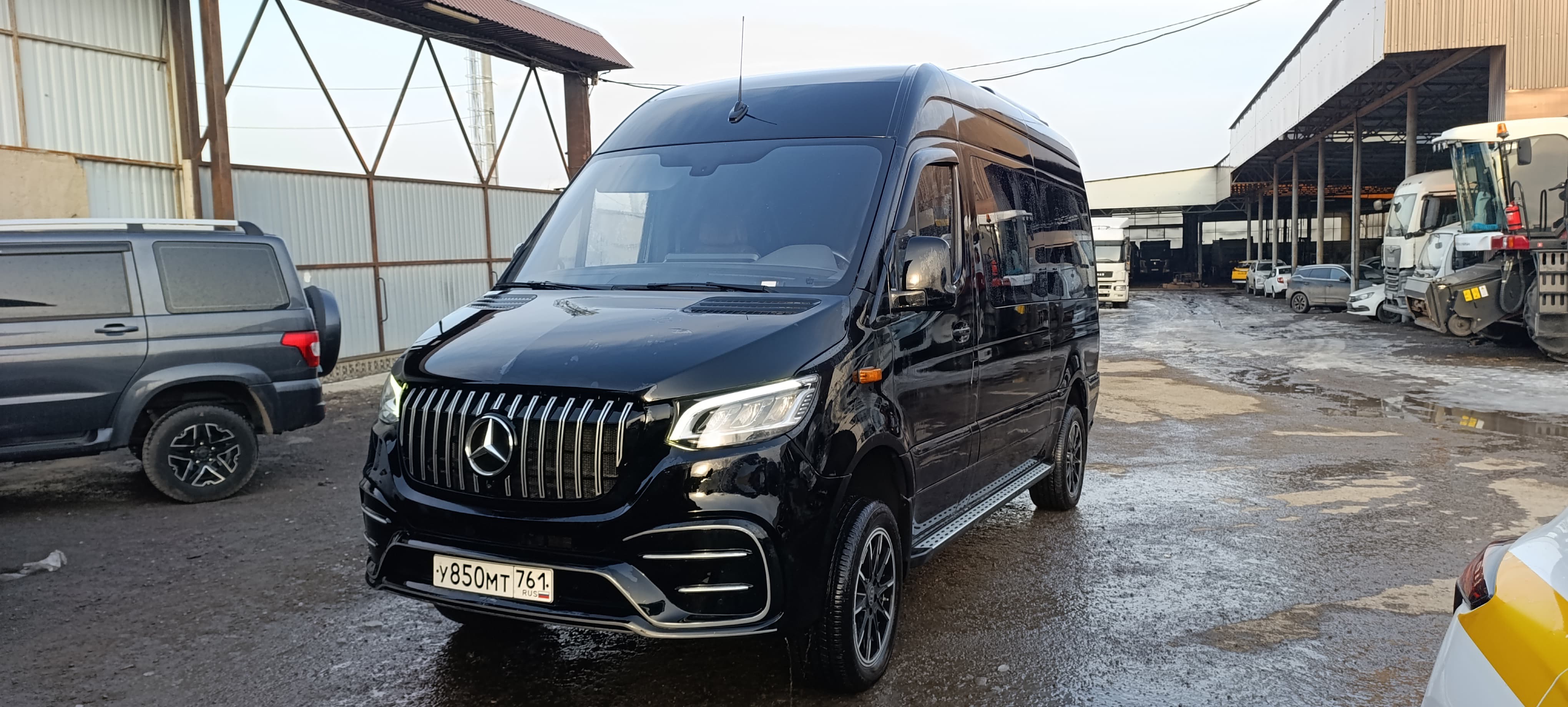 Описание: Двигатель OM642, четырехтактный дизель - рабочий объем цилиндров (см3) 2987 -максимальная мощность (кВт) (мин-1) 140 (3800) Экологический класс: пятый Технически допустимая максимальная масса транспортного средства (Кг) 3500 4 х 4 Полный привод 8+1 мест Категория \"В\" (легковой) АКПП-7G Tronic Цвет кузова Черный лак (040) Кондиционер в водительском салоне Кондиционер Вебасто в пассажирском салоне Кресла комфортные с электро регулировками, оттоманками, поворот 360 градусов Диван трехместный раскладывается в спальное место на салазках Отопление салона Webasto фен, догреватель Тепло/шумо/вибро изоляция пассажирского салона Стеклопакеты с дополнительной тонировкой Мультимедиа: TV Sony 32\" Full HD, Smart TV, DVD/USB, акустическая система Focal Камера заднего вида Розетки в салоне: 12V, 220V, USB. Световая потолочная LED панель с изменением яркости света Декоративная LED подсветка пассажирского салона Холодильник Электро привод боковой двери Дизайн отделки салона и LED подсветок Внешний дизайн ( обвес ): Бампер передний, бампер задний с добором и насадками, решетка, знак Мерседес-Бенц с подсветкой Дизайн оконных проемов Шторки на окнах USB - порт/розетки у каждого пассажира Мультифункциональнный руль Фары LED Круиз-контроль Датчики боковых зон и слежения за полосой движения. Датчики дождя и света Напольное покрытие под дерево \"Палубный тик\" Наружный пластик (бампера, боковые панели, ручки, зеркала, решетки) окрашены в цвет кузова Поручень при входе Пороги Электрическая подножка Защита двигателя и КПП Диски R18 Запасное колесо R16 Набор инструментов |