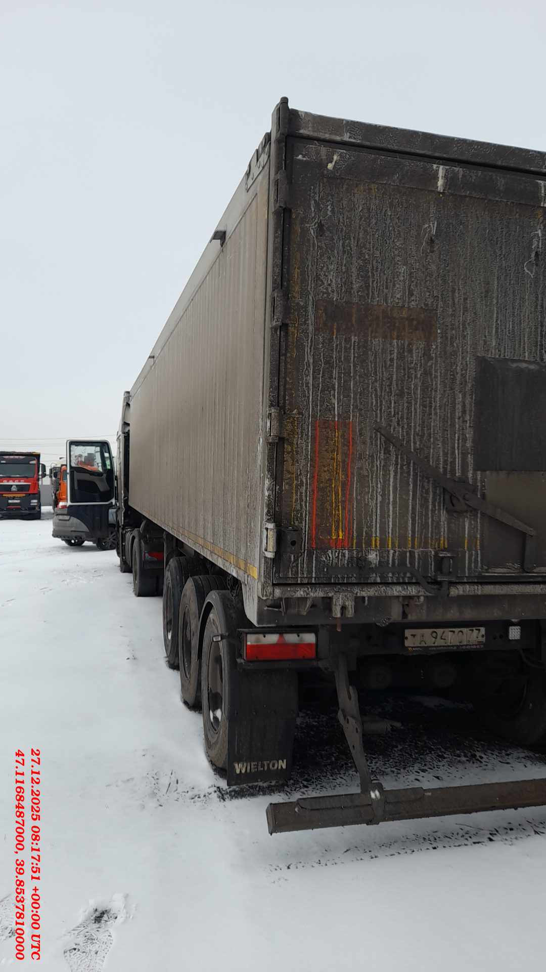 Описание: Номер лота: 000018773 ??Место осмотра: Ростов-на-Дону, Ростовская область, Аксайский район, хутор Маяковского, улица Заводская, 65. Технические характеристики: •Внешняя длина: 11?068 мм; •Внутренняя длина в ? высоты кузова: 9?872 мм; •Длина пола для пользования: 9?409 мм; •Внешняя ширина: 2?550 мм; •Внешняя ширина в середине стены: 2?460 мм; •Внутренняя ширина между верхними краями бортов: 2?350 мм; •Внешняя высота до края бортов / под верх тента: 3?697 / 3?525 мм; •Внутренняя высота: 2?000 мм; •Колёсная колея: 2?040 мм; •Расстояние шип – вторая ось: 6?810 мм; •Высота седла: 1?200 мм; •Межосевое расстояние: 1?310 мм; •Задний свес: 1?418 мм; •Высота пола: 1?525 мм; •Высота во время максимального угла высыпки: 9?969 мм; •Максимальный угол высыпки: 46°; •Шины: 385/65 R22,5; •Допустимая полная масса: 36?000 кг (tech. 39?000); •Собственный вес клапан / клапан-ворота: 5?490 / 5?670 кг; •Нагрузка на ось: 8?000 кг (tech. 9?000); •Нагрузка на седло: 12?000 кг; •Кубатура: 48,3 м?. Шасси: •Стальная конструкция из стали повышенной прочности S700; •3 оси по выбору покупателя, нагрузка на ось до 9?000 кг; •Пневмоподвеска; •Стальные баки для воздуха; •Первая ось с автоматическим подъемом, возможностью ручного управления; •Клапан поднятия и опускания платформы H-S; •Плита сцепки с 2-дюймовым заменяемым шкворнем; •Одна сбрасываемая опорная нога; •Боковые отбойники по норме 73; •Задний стальной бампер, складываемый, адаптирован для распределения битумной массы; •Доступные высоты седла: 1?200 мм. Тормозная система WABCO: •Соответствует требованиям ADR; •Антиблокировочная система EBS 2S/2M с функцией Vehicle Stability („RSP”, „RSS” или „TRS”), питание от розетки ISO11992. Электрооборудование: •24 V по стандарту ECE; •Задние фары комплексные: STOP, позиционные, габаритные огни LED; •Свет заднего хода, противотуманные фары, поворотники (лампочки); •Освещение номерных знаков LED; •Габаритные диодные огни LED; •Боковое диодное освещение LED; •Светоотражающие таблички; •Розетки 2?7 + 15 PIN и EBS на передней стенке. Колёса и шины: •Диски (6 шт.): стальные; •Диск запасного колеса: стальной; •Шины: 385/65 R22,5 GoodYear/Bridgestone (7 шт.). Надстройка / грузовой отсек: •Из алюминиевого листа и профилей; •Пол ENDUR-AL, толщина 5 мм, твёрдость HB 110; •Боковые стенки: профиль 350?40 мм, внутренняя толщина 2,5 мм; •Передняя стенка наклонена под углом 20°; •Лого Velton на боковых стенках; •Лестничная площадка с балконом и входом по стороне водителя; •Задний затвор: клапан-ворота симметричные (1/2 + 1/2) с двумя тягами крепления; •Шарнирные петли для клапана; •Гидроцилиндр верхнего крепления: Hyva®; •Набор гидравлического подключения; •Тент плотностью 680 г/м?, сворачивающийся набок; •Балка для стягивания бортов. ??? Мы — компания Альфа-Лизинг. Более 27 лет работаем с предпринимателями. Покупка возможна удобным для вас способом — оформление в лизинг или покупка за собственные средства. ?? Стоимость в объявлениях уже включает НДС. У нас более 70 офисов, наши специалисты помогут заключить договор в любом городе России. ?? Записаться на осмотр и узнать более подробную информацию вы можете по телефону, указанному в объявлении. Звоните! Все представленные автомобили находятся в наличии в нашем автопарке. ?? Техника имеет прозрачную историю эксплуатации ?? Прошла необходимые проверки ?? Доступна к покупке в короткие сроки Почему мы? ? Работаем с бизнесом любого размера ? Оформляем лизинг на выгодных вам условиях и с авансом от 0% ? Пр